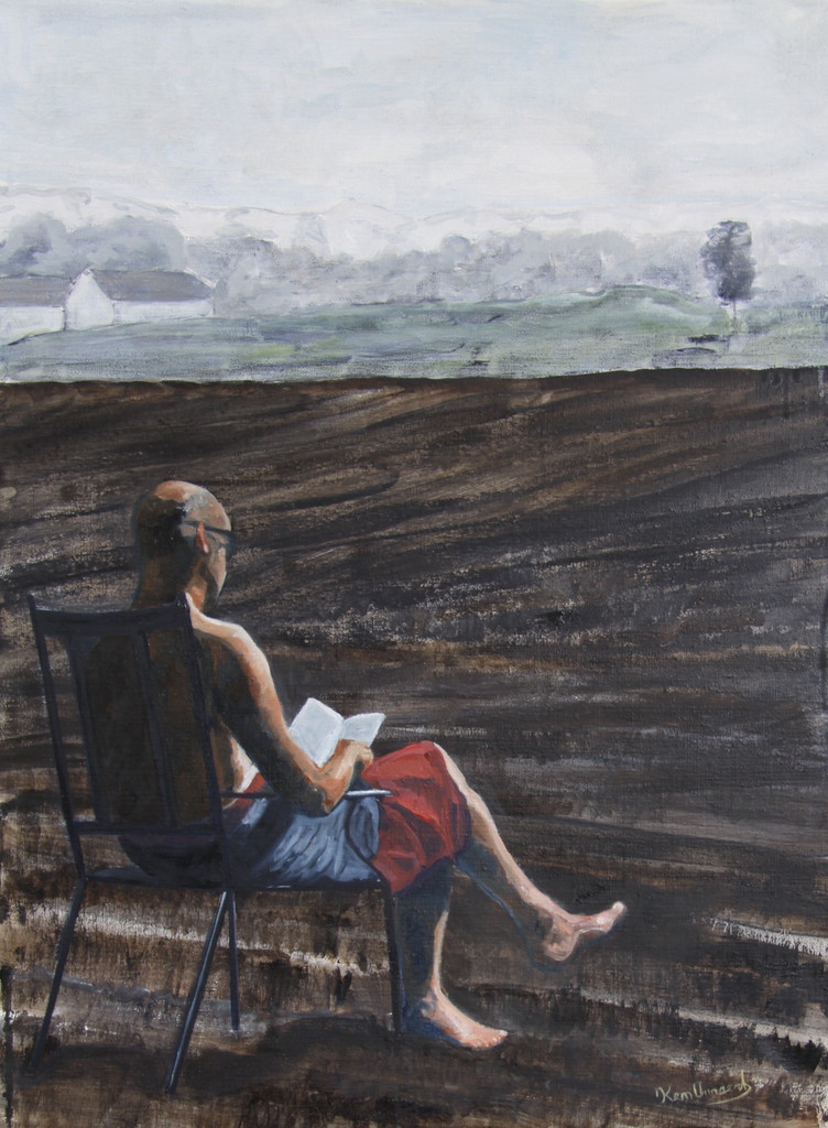 Man, leest, op akker