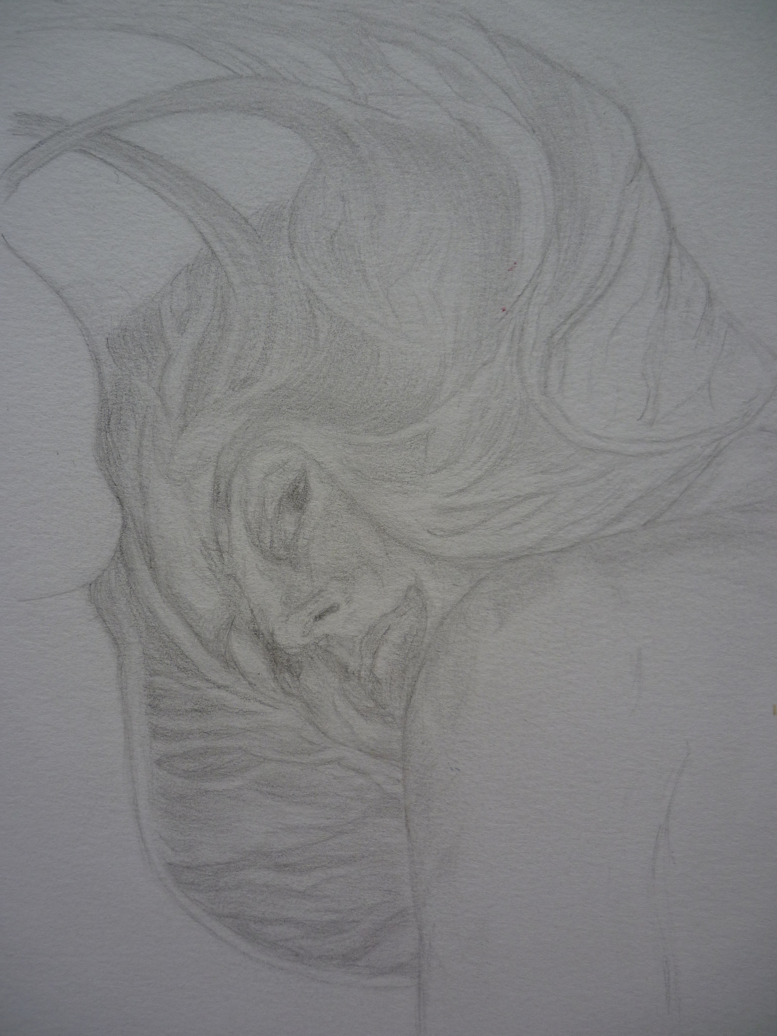 Portrettekenaar en schilder maakt portretten met acrylverf, inkt, houtskool, oil pastels en olieverf