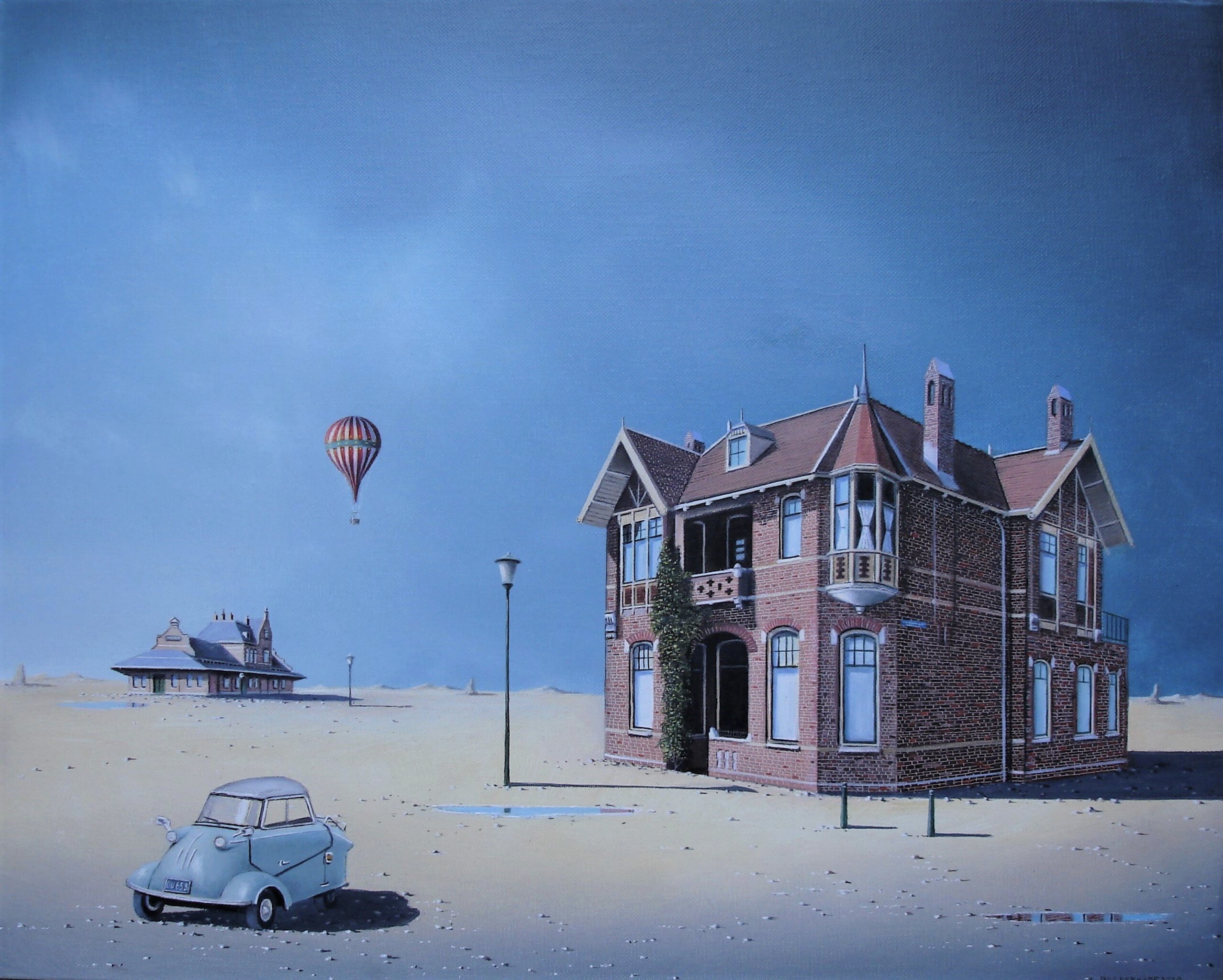 Bas Verkade schildert surrealistische taferelen (olieverf) met fotografische precisie.Zeer verfijnd werk op papier ,doek en paneel.