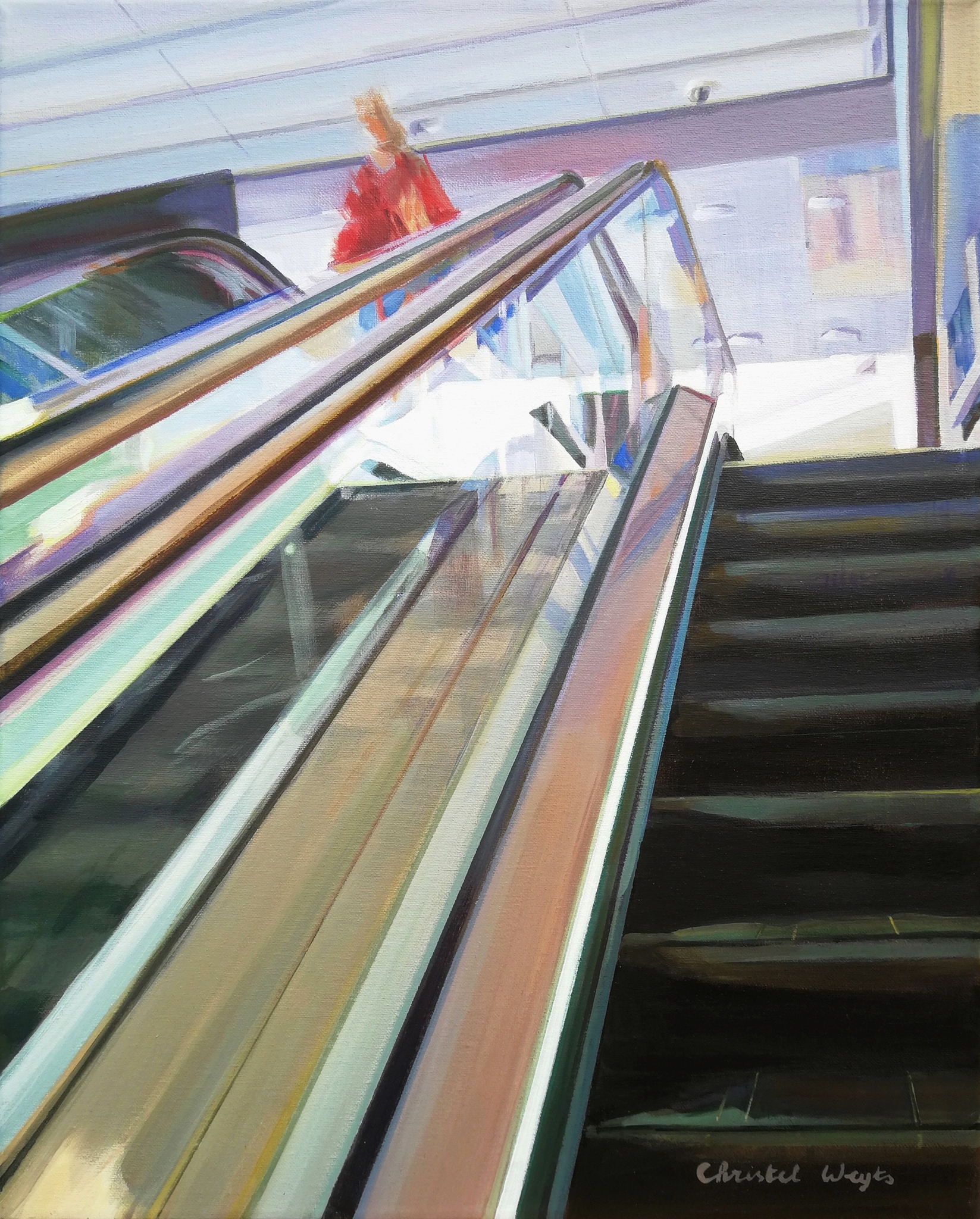 Acryl Paars Licht Realisme Reflectie Station Onderweg Roltrap Weyts