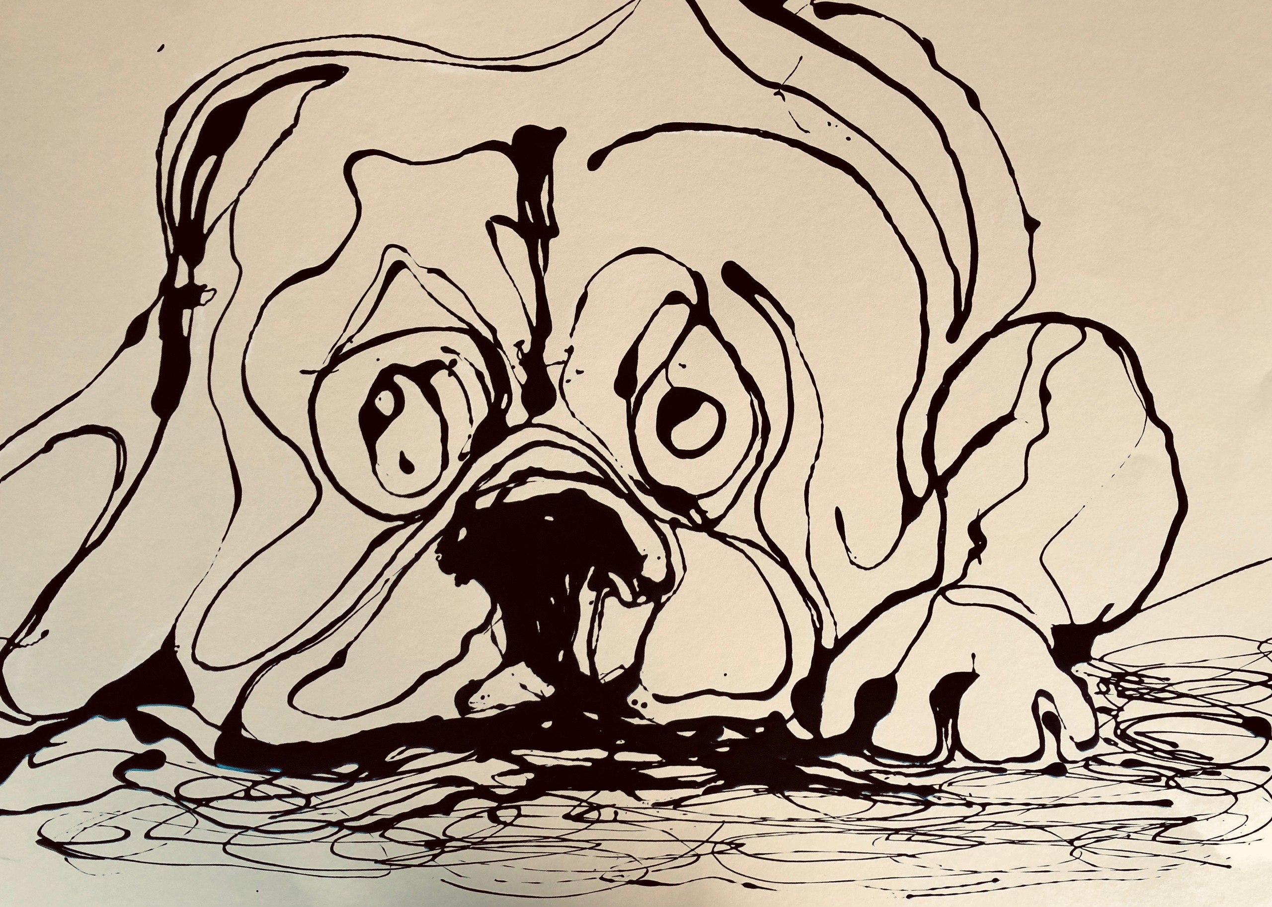 De boxer, wie kent zijn ondeugende blik niet! Dit heb ik laten druipen met hamerite op creme papier.