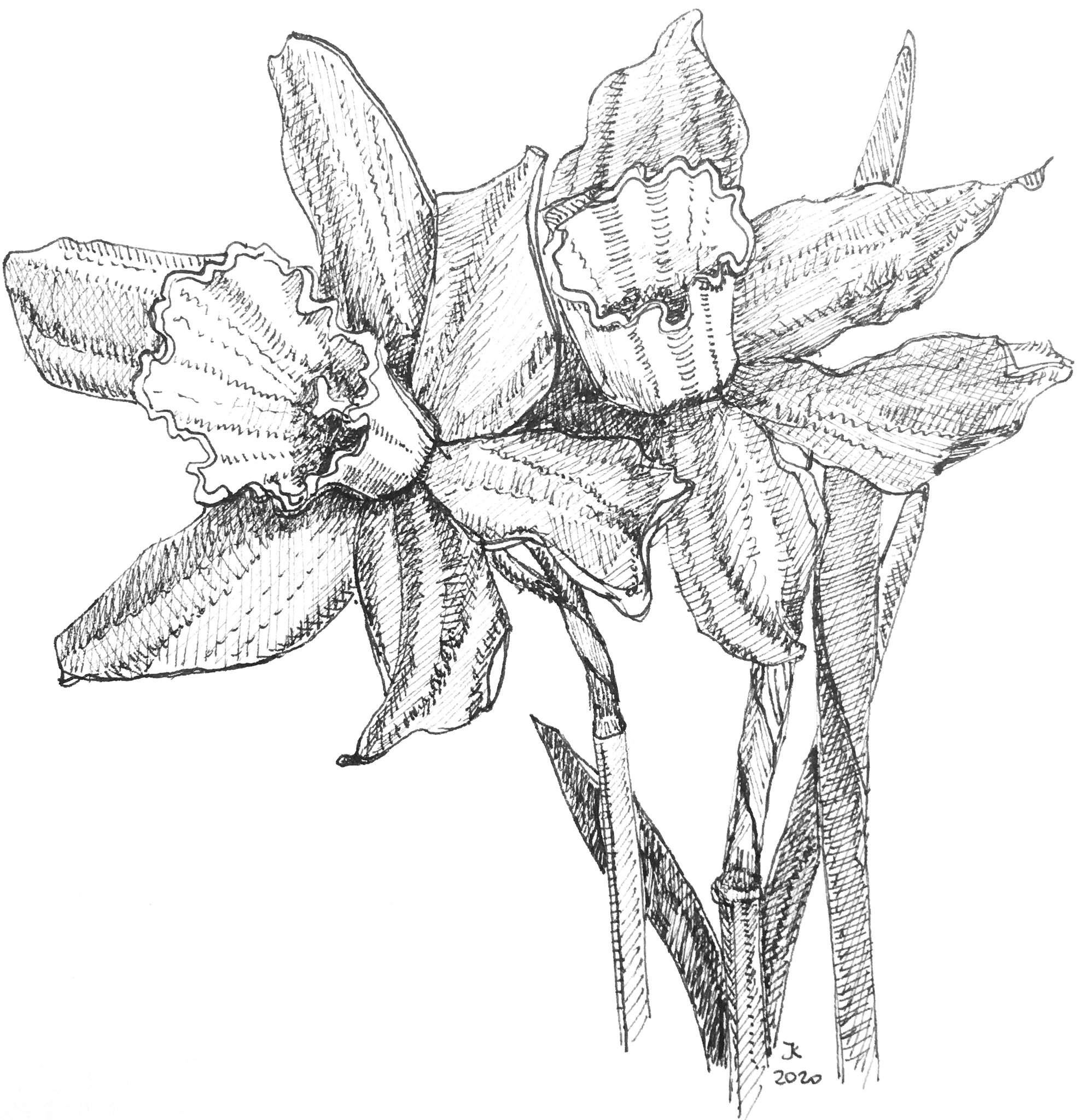 Narcissen Challenge Realistisch Natuur Inkt Pentekening