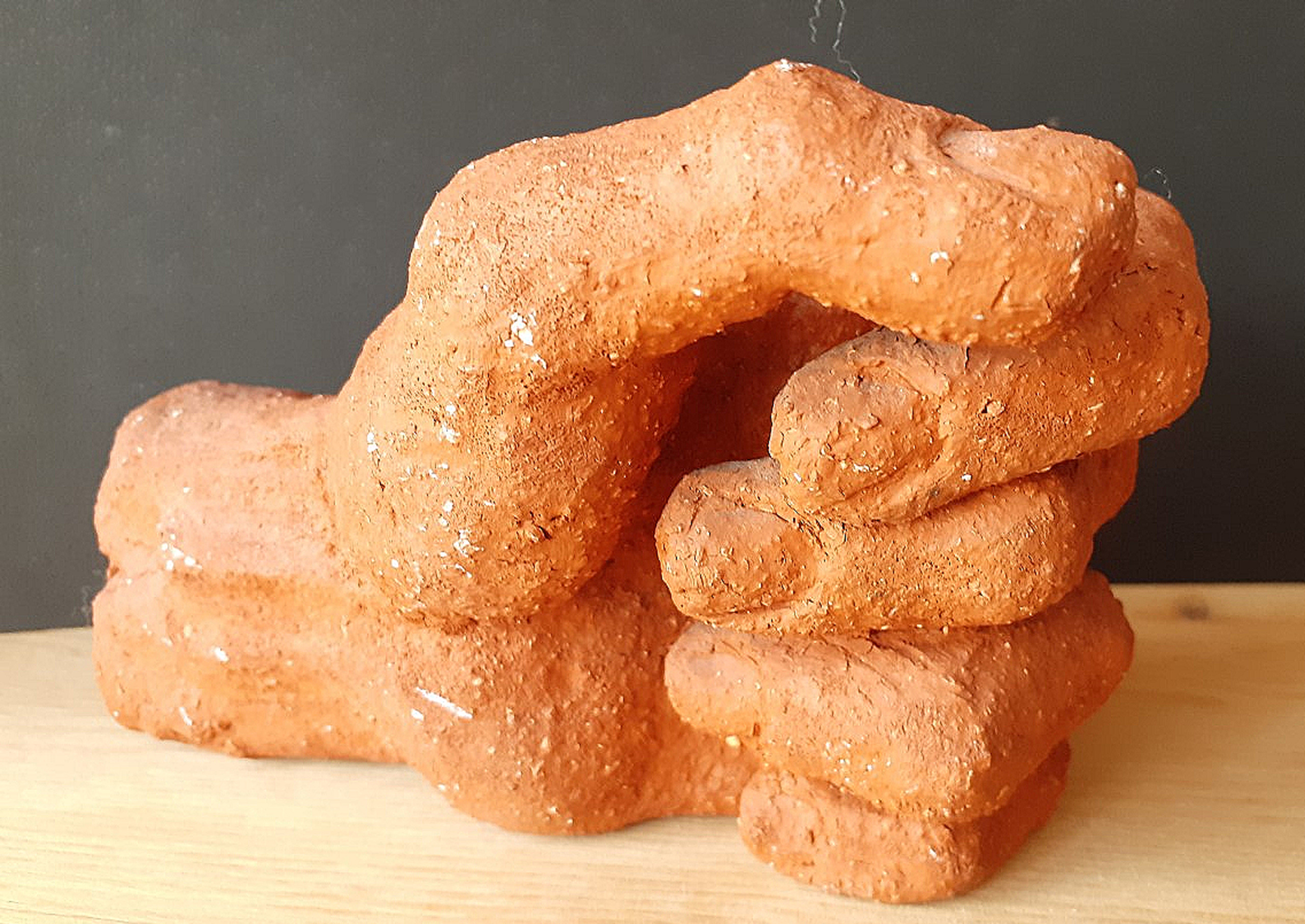 Geboetseerde vuist, in rood-bakkende chamotte klei