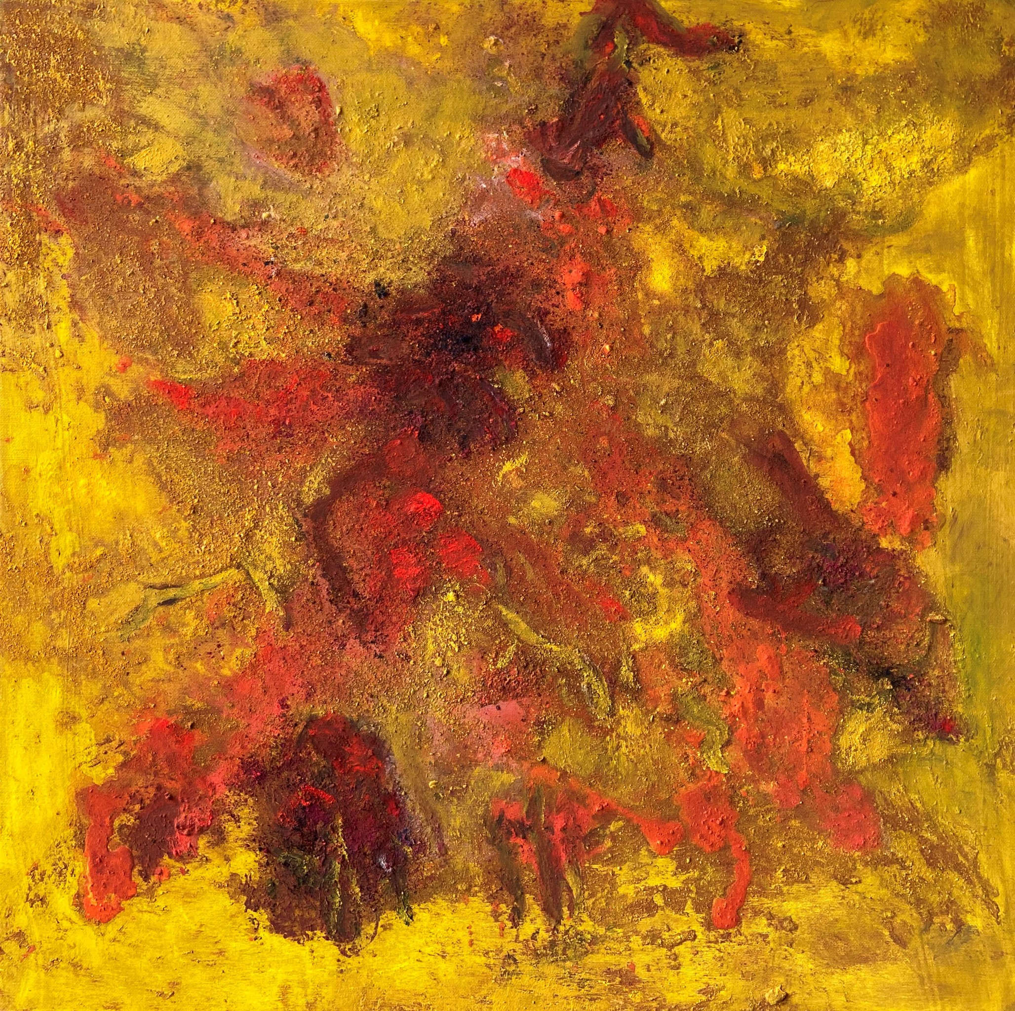 Schilderij Abstract Rood Geel Oker Anneke Eitempera Schie