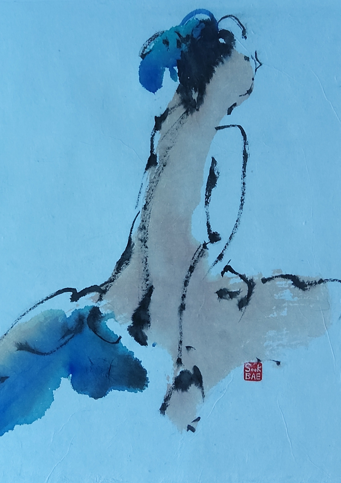 Sook Bae(1959)is in 1980 afgestudeerd aan de young nam college(Toegepast kunsten) in zuid-korea In 1996 volgde zij modeltekenen aan de Grand Academie te parijs Sins 1997 woont ze in Amsterdam. "ik teken en schilder direct naar model Het onderwerp dat my blijvend inspireert is de mens; poserend of bezig met alledaagse dingen, De techniek van het tekenen is sumi-e is mijn grote Liefde. Als ik goed bezig ben, werken mijn ogen en handen Samen en is mijn hoofd leeg; het voelt als een Meditatie"