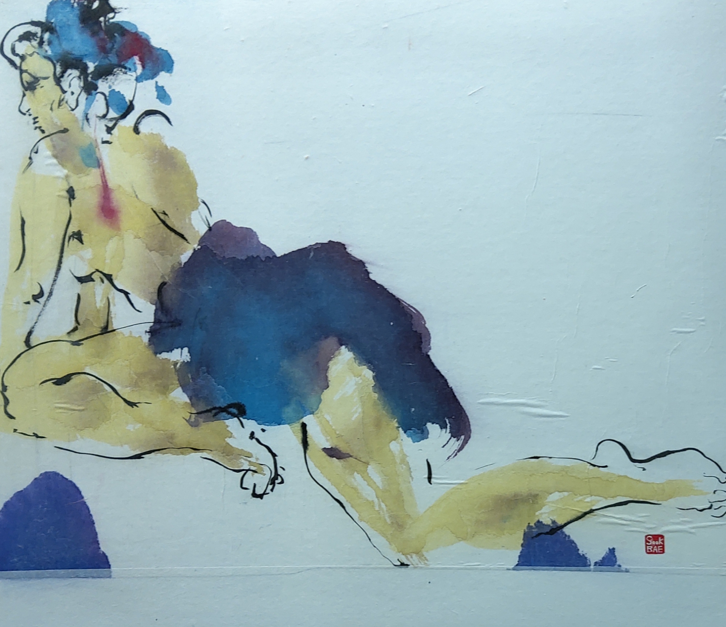 Sook Bae(1959)is in 1980 afgestudeerd aan de young nam college(Toegepast kunsten) in zuid-korea In 1996 volgde zij modeltekenen aan de Grand Academie te parijs Sins 1997 woont ze in Amsterdam. "ik teken en schilder direct naar model Het onderwerp dat my blijvend inspireert is de mens; poserend of bezig met alledaagse dingen, De techniek van het tekenen is sumi-e is mijn grote Liefde. Als ik goed bezig ben, werken mijn ogen en handen Samen en is mijn hoofd leeg; het voelt als een Meditatie"