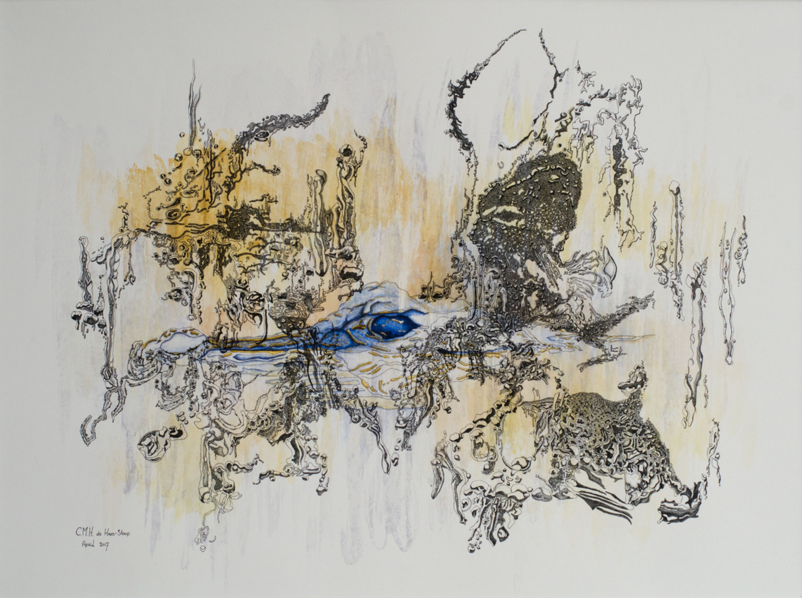 Fun is in danger 2 is uitbeelding ijs. Het plezier is het ijs met de krokodil als gevaar. Materiaal is inkt met Aquarelverf Windsor & Newton, op 300 grams aquarelpapier 100% katoen, grain satine Hot Pressed. Werk is te koop met een passe-partout maar zonder lijst.