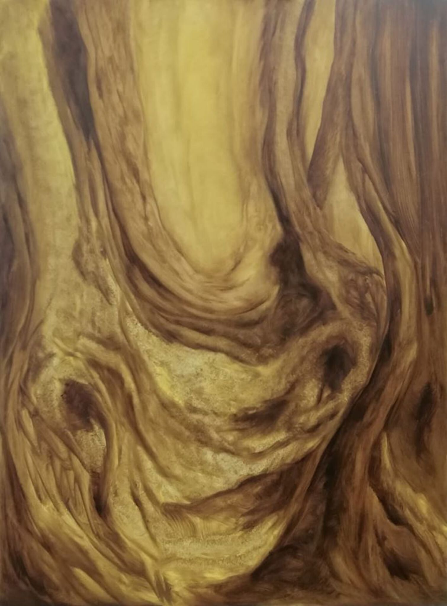 Abstract Figuratief Geel Bruin Boom Olieverf Paneel Natuur Abstraherend Stilleven Okergeel Boomwortels 2d