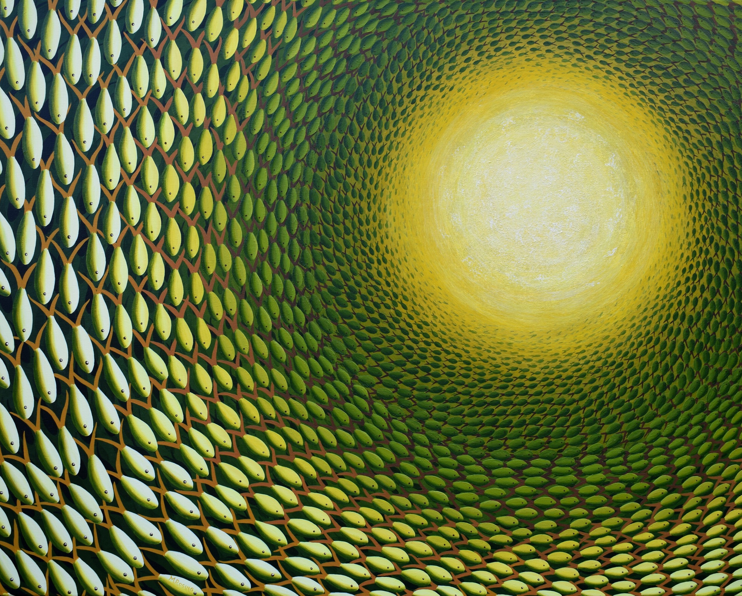 Acryl Yellow Groen Green Great Rond Vissen Cirkel Oceaan Marieke Ocean Geen Perspectief School Sea Fish Circle Round Run Rosing Loppersum Sardine Schoolvissen Mariekerosing