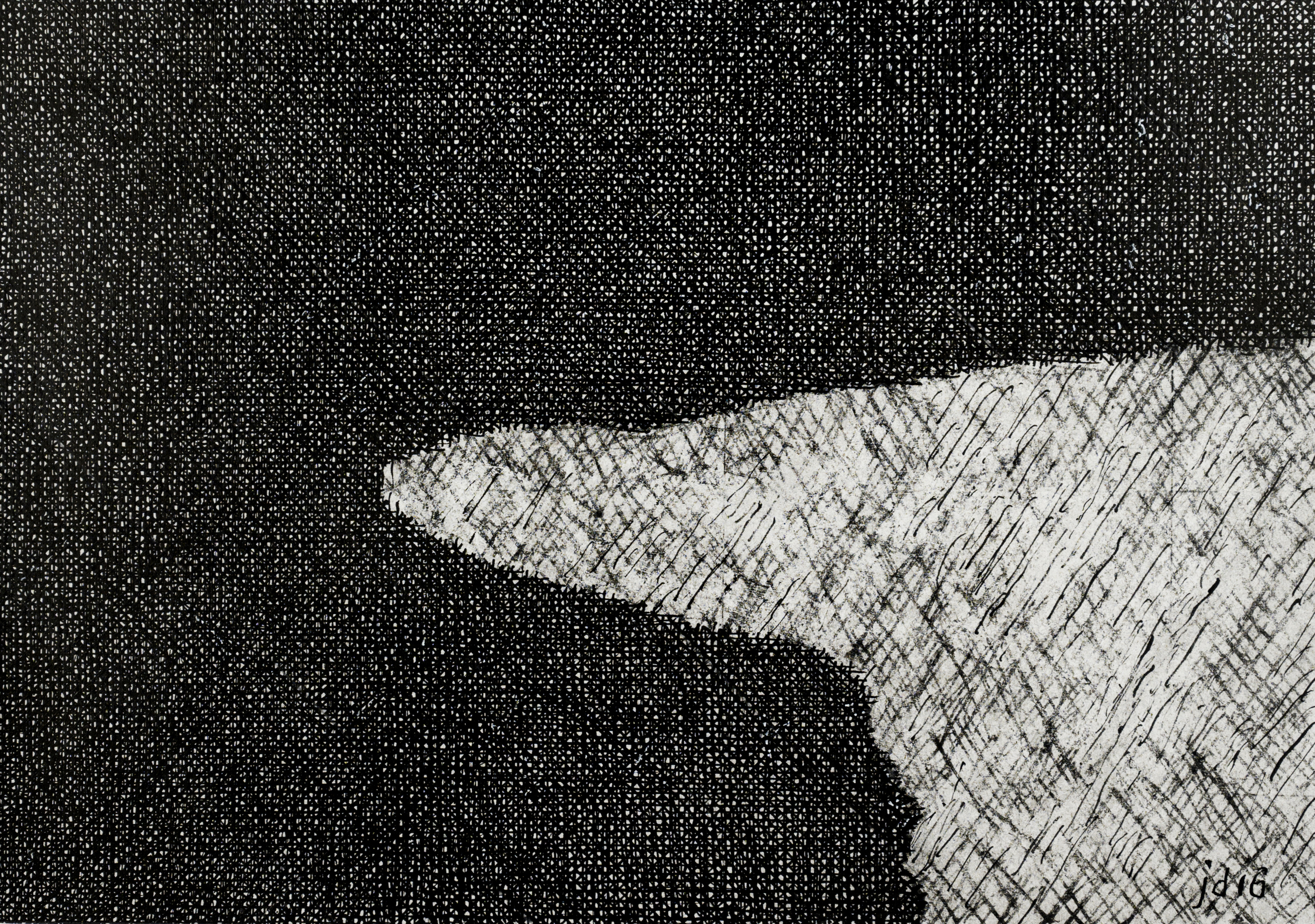 Tekening met oostindische inkt. Werk in passepartout van 50x50cm.