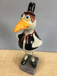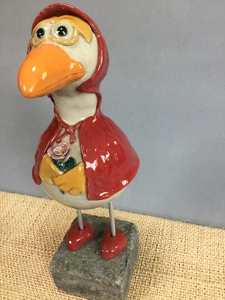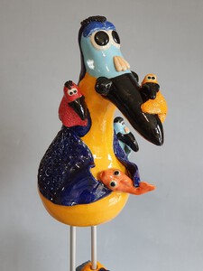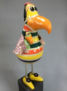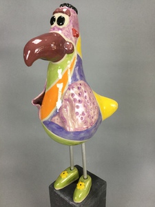 Figuratief Modern Rood Vogel Paars Groen Kleurrijk Dier Sokkel Tuin Klei Handgemaakt Geboorte Vrolijk Uniek Huwelijk Cadeau Sculptuur Geschenk Keramiek Verjaardag Glazuur Glimlach Jubileum Pensioen
