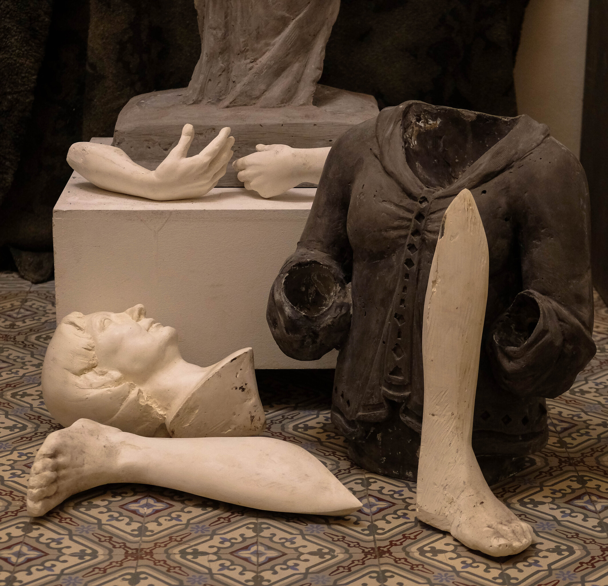 Puzzelwerk: Portret van Anita met demonteerbare delen, 7 in totaal. Hoofd, armen en benen zowel als torso kunnen verwijderd worden. Beschikbaar in cement of krijthars.