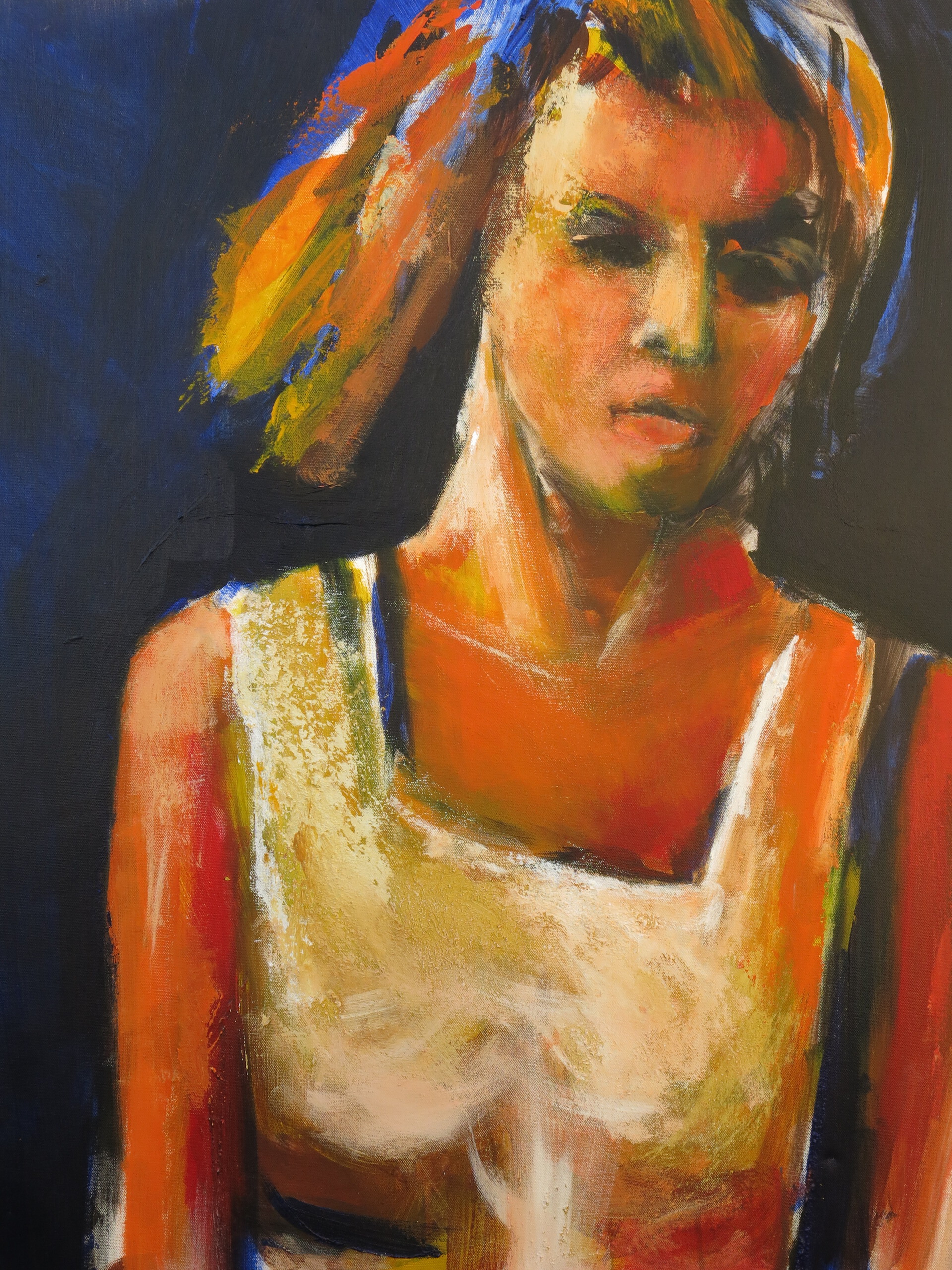 Ruw opgezet portret van een meisje in het wit.