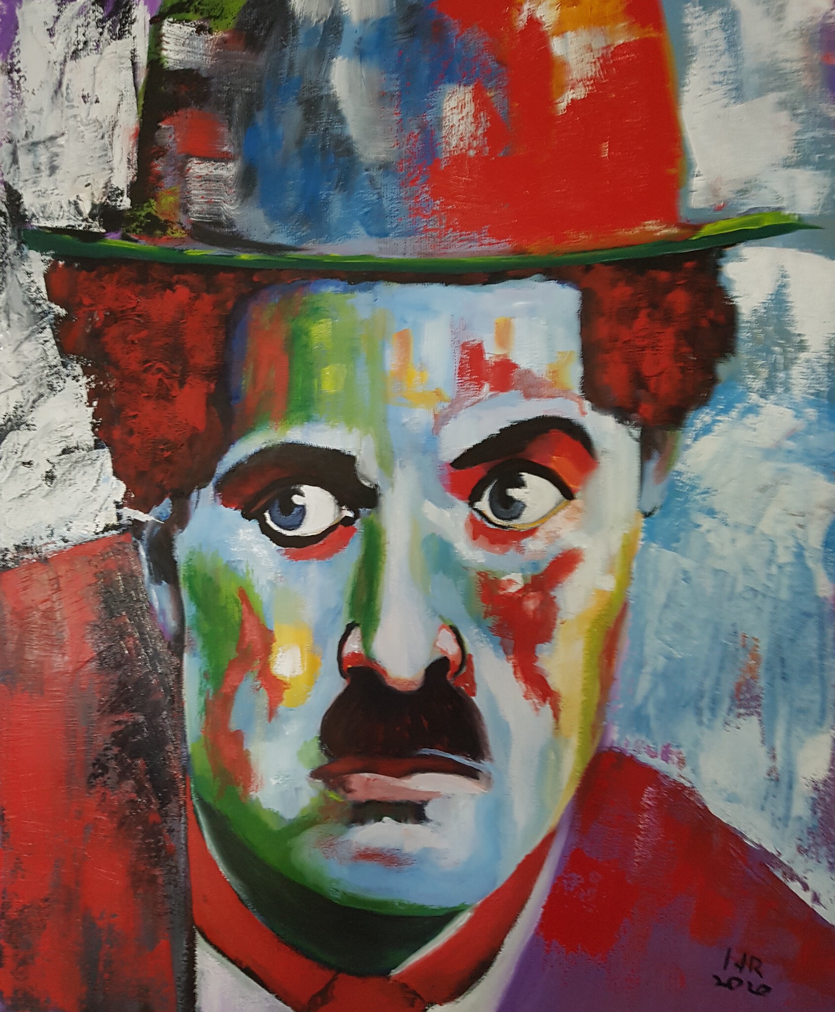 Olieverf Portret Van Charly Chaplin