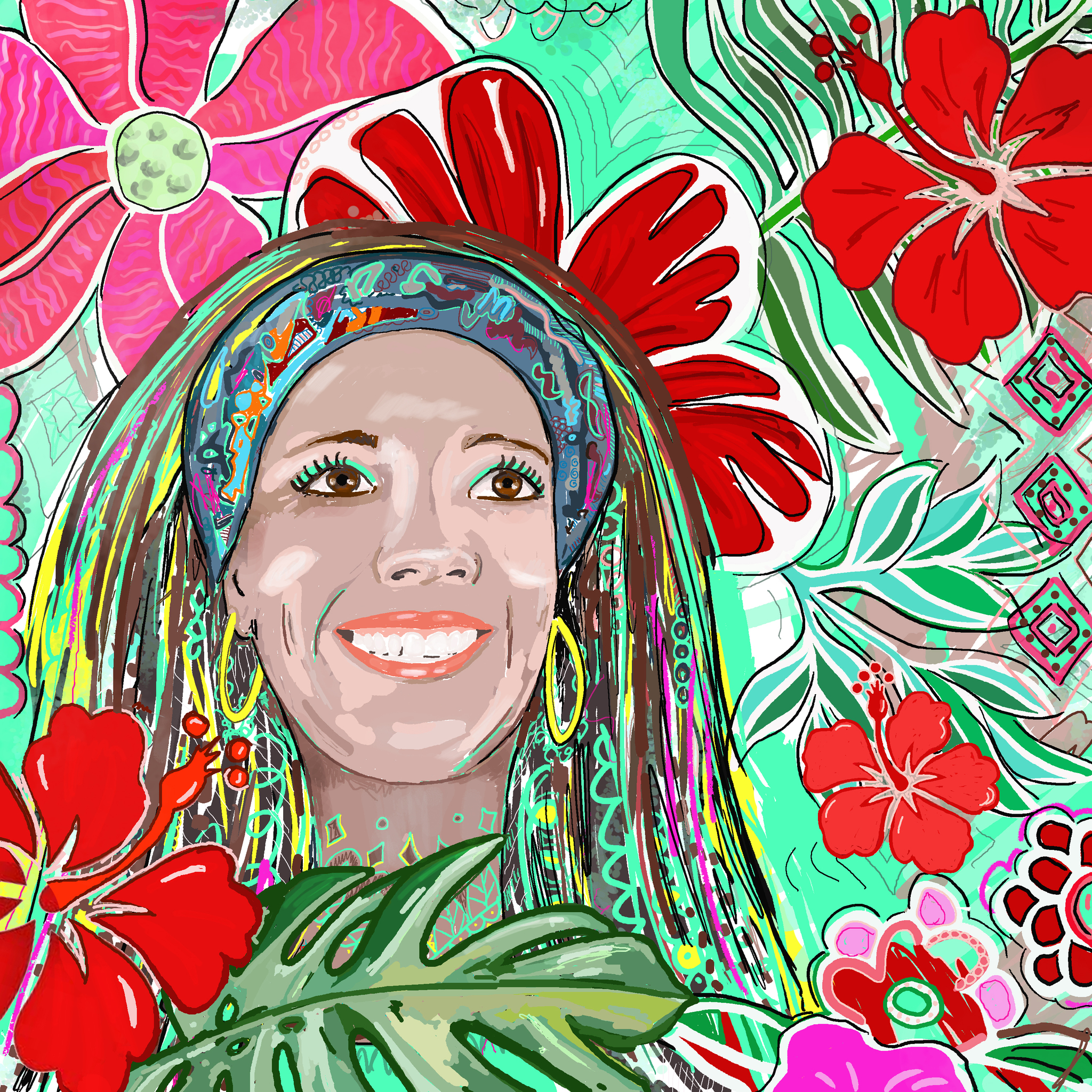Bloemen Kleurrijk Vrolijk Flowers Zelfportret Selfportrait Portraitart Colorfulart Caribbeanart Caribbeanartist Tropicalart Travelartist Portraitartist Happyartist