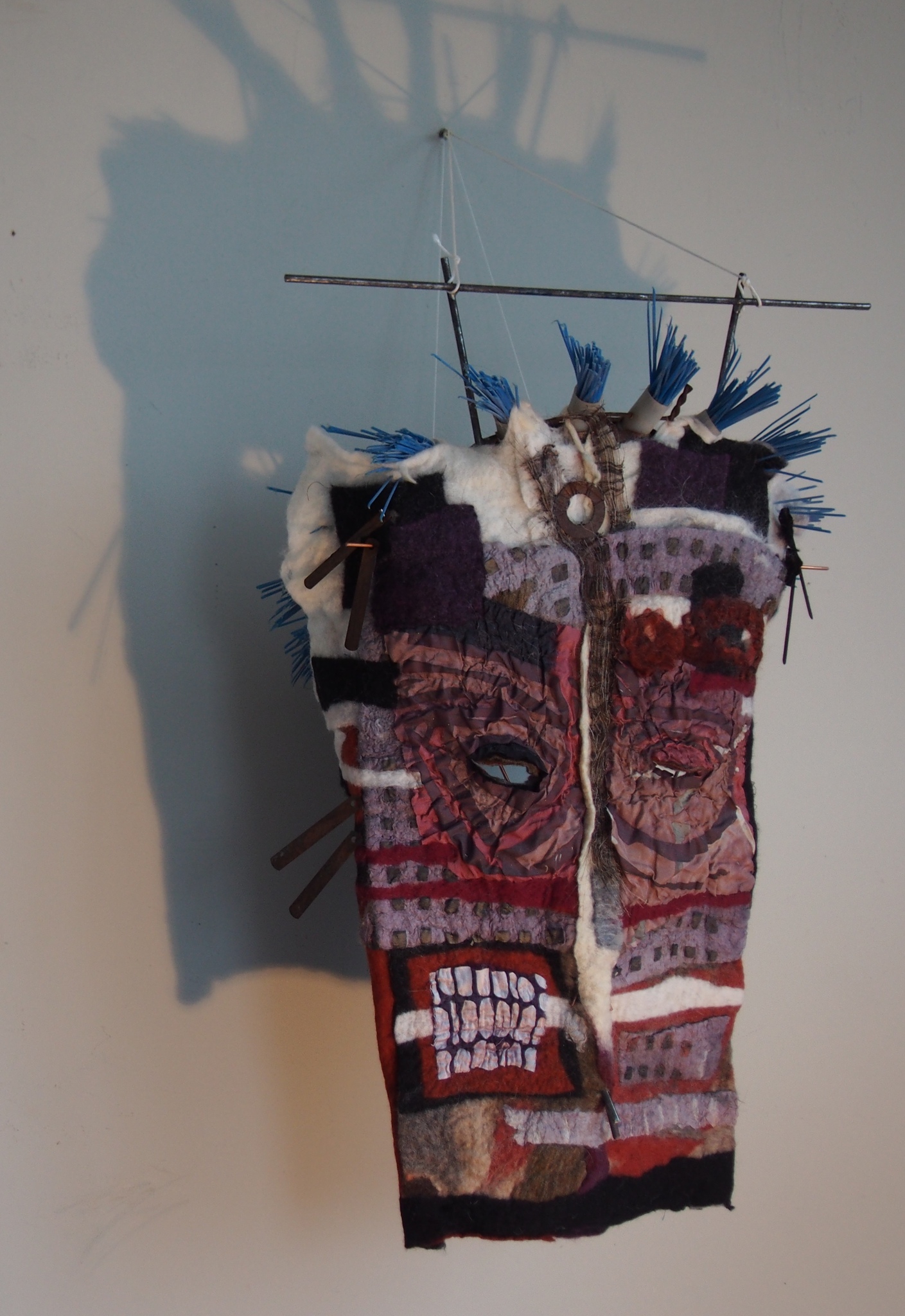 Een masker geïnspireerd op Alaska, gemaakt op een frame van staal en een gebruiket borstel van een straatveegmachine. Uit de serie Alaxsxaq, Alaska alles in het kwadraat