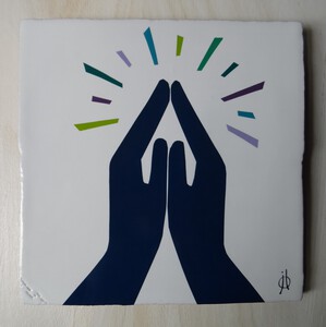 " Een kleur wordt gevoel, een vorm een gedachte. " Waarom tegeltjes? Deze zijn duurzaam, decoratief en vertrouwd. De uitdaging is ambachtelijke technieken in te zetten voor een beeldtaal. Een beeld dat een feest der herkenning wordt! " hooked" tegelgram mei 2019 oude aardewerk tegel met zeefdruk.