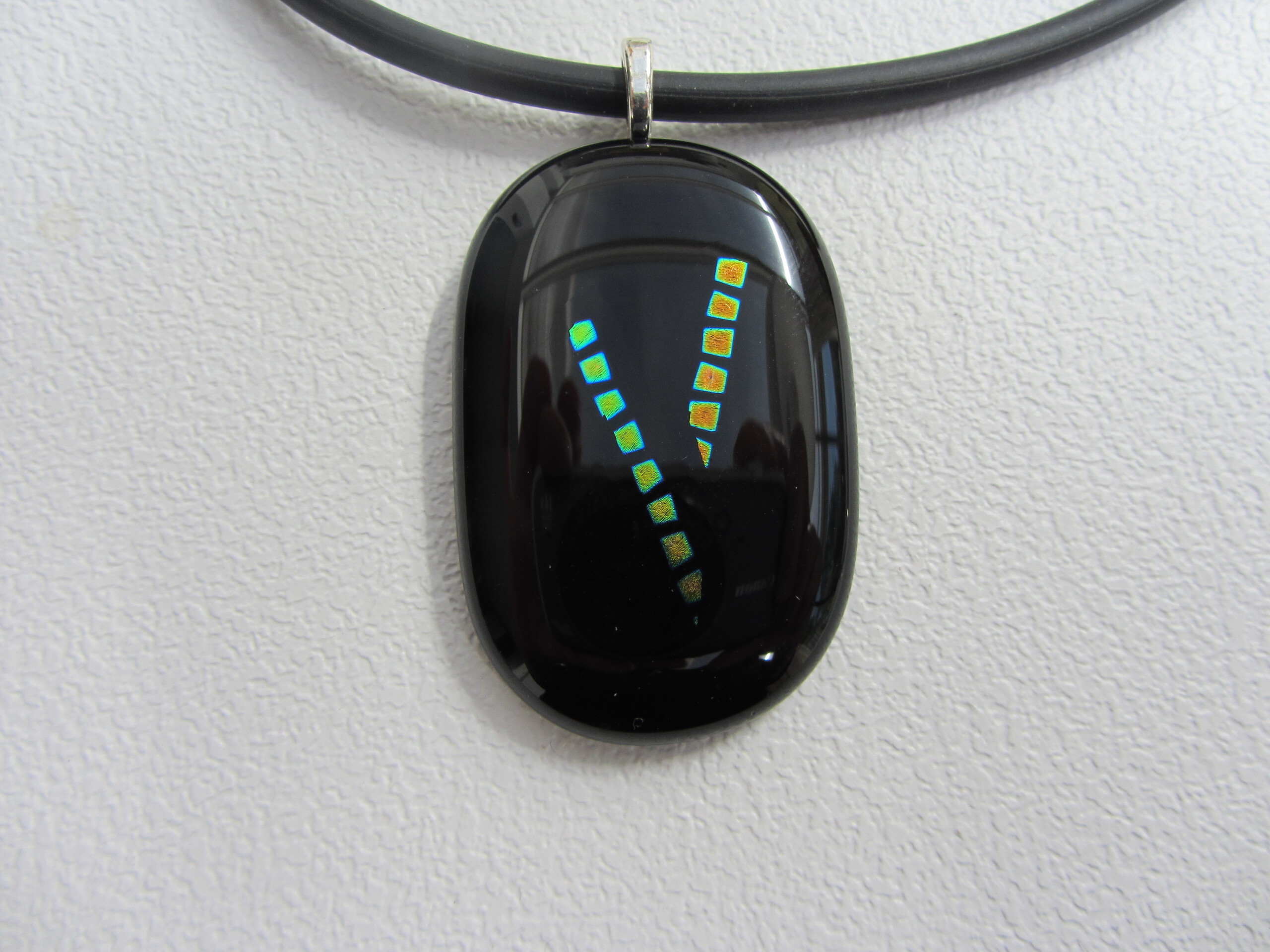 Zwart met groen/blauw dichro aan zwart rubberen veter.