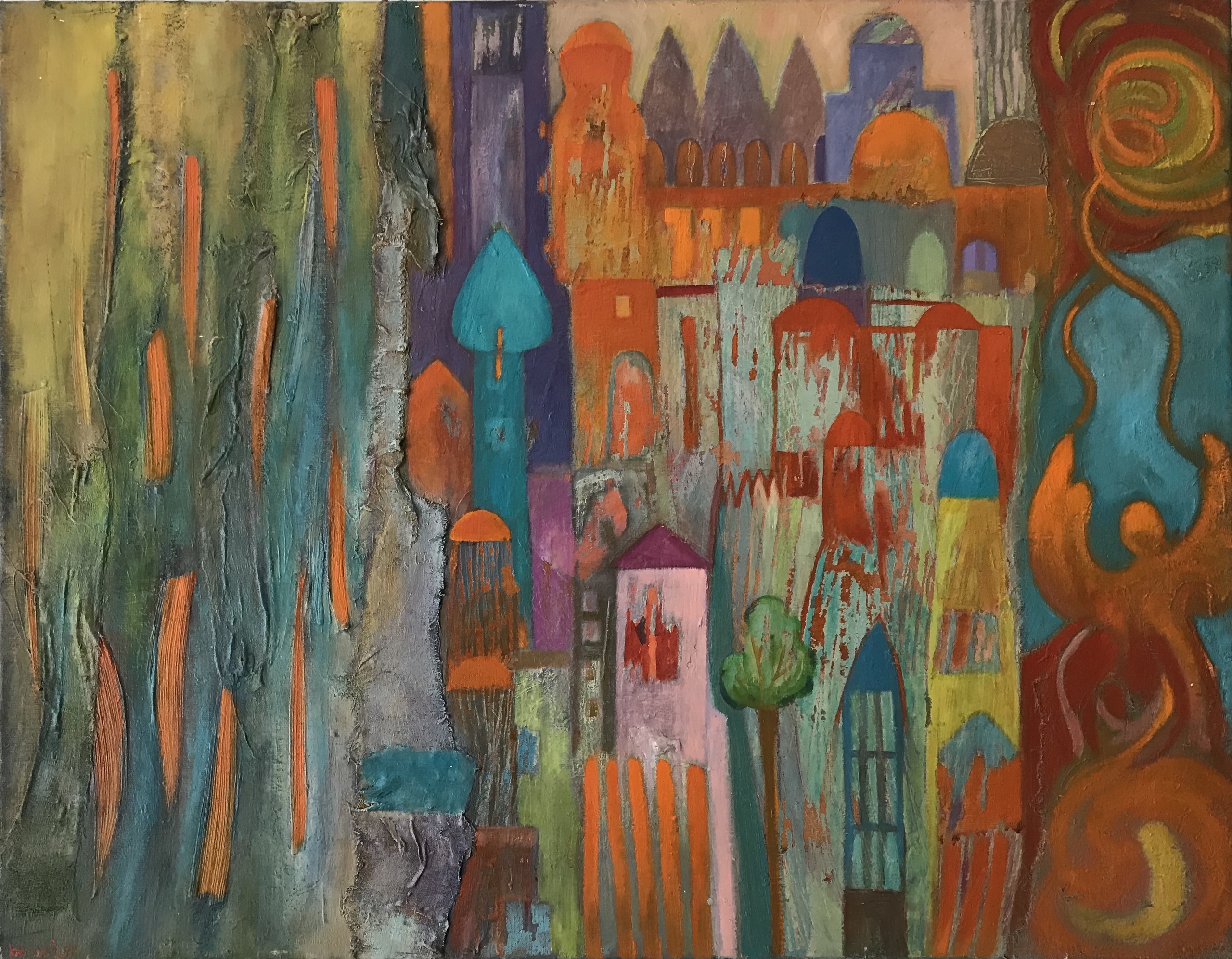 Wat betekent schilderen voor mij. Het is een uitdaging om het witte doek te temmen . Het met kleur bespelen , gebruikmakend van andere materialen zoals verband , krantenpapier , zand en druksels. Het begint met kleurlagen over elkaar , zodat de onderste lagen terug te vinden zijn in het uiteindelijke werk. Al doende ontwikkeld zich iets , het vormt zich , een beeld of gedachte wordt zichtbaar .