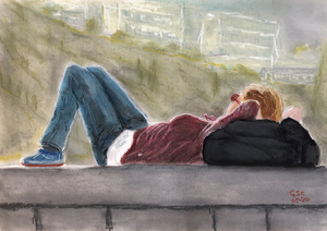 Mijn naam is Gijs Sterks, 28-7-1950. Na een leven in de automatisering, een hartstilstand en een reorganisatie ben ik, sinds 1 juli 2006 met vroegpensioen. Ondanks een CVA in 2017 die mijn fijne motoriek aantastte, teken en schilder ik nog steeds. Ik volgde tekencursussen sinds 2006. Mijn werk kent verschillende kanten. Enerzijds de eigen expressionistische interpretatie van de waarneming of beeld uit het verleden, anderzijds abstracte werken afgeleid van dingen die ik gezien of gevoeld heb in werkelijkheid of in droombeelden.