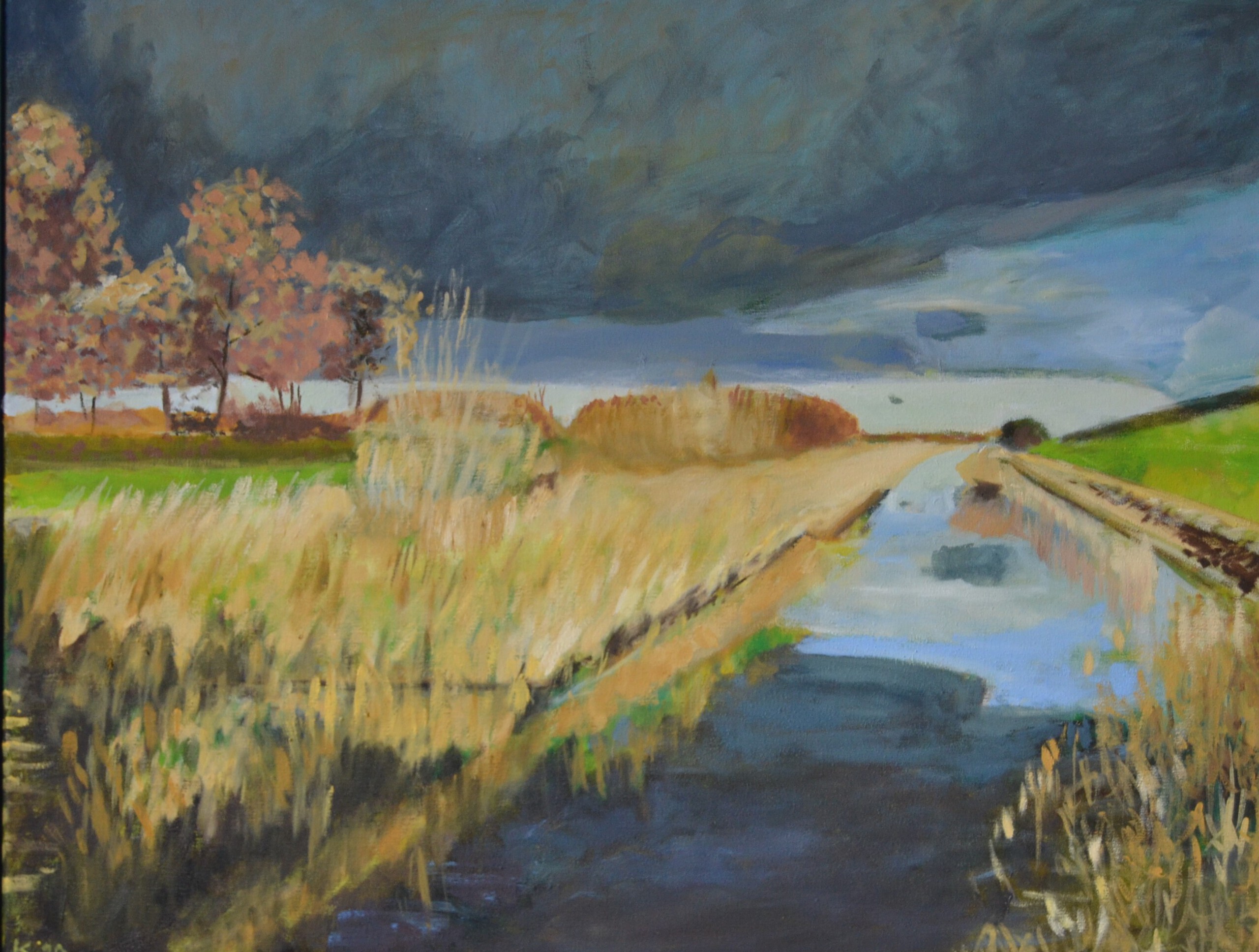 Zware herfstluchten inspireerden me om dit schilderij te maken. Vlakbij huis vond ik de inspiratie.