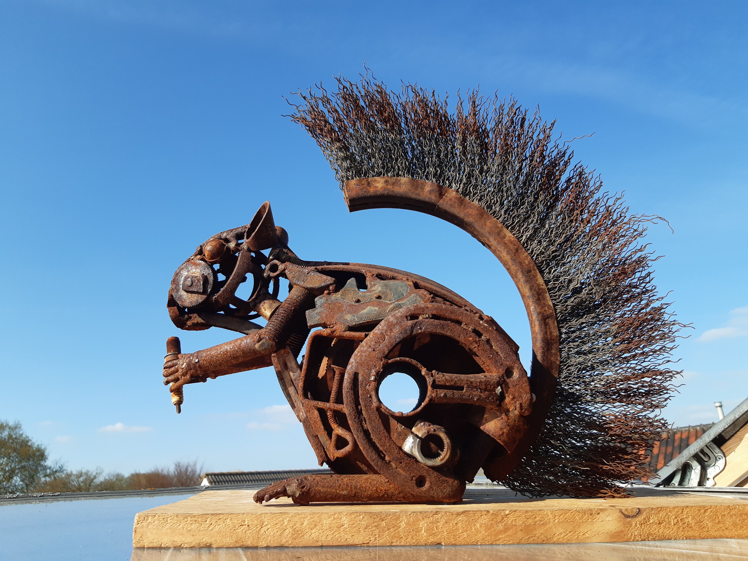 Tuinbeeld Handgemaakt Kunst Eekhoorn Hergebruik Duurzaam Tuinbeelden Recyclekunst Tuinkunst Duurzame Ijzerkunst Metaalkunst Ijzerwerk Schrootkunst Staalkunst Ijzerkunstwerk Eekhoornbeeld Eekhoornsculptuur Eekhoornkunst