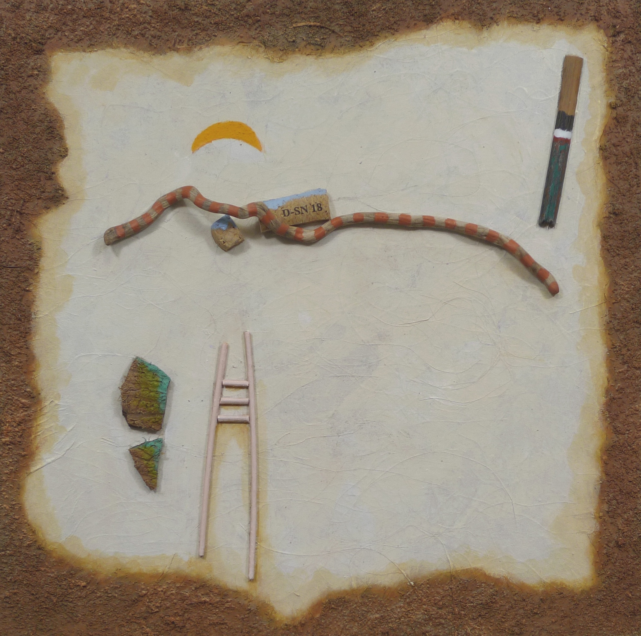 Kozo-papier, gemengde materie en Olieverf op MDF paneel.
