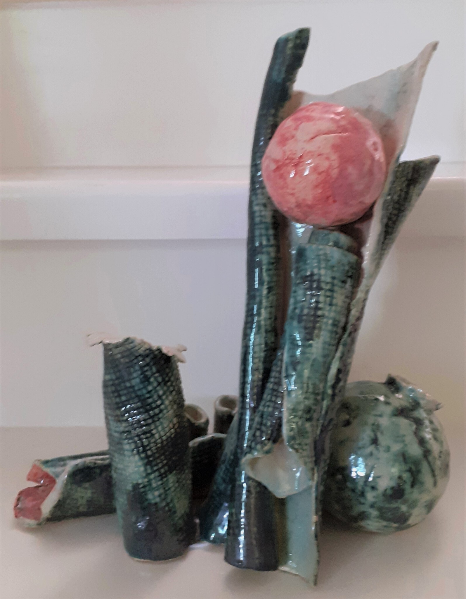 handgevormd keramisch sculptuur 2x gestookt waarbij 1x geglazuurd