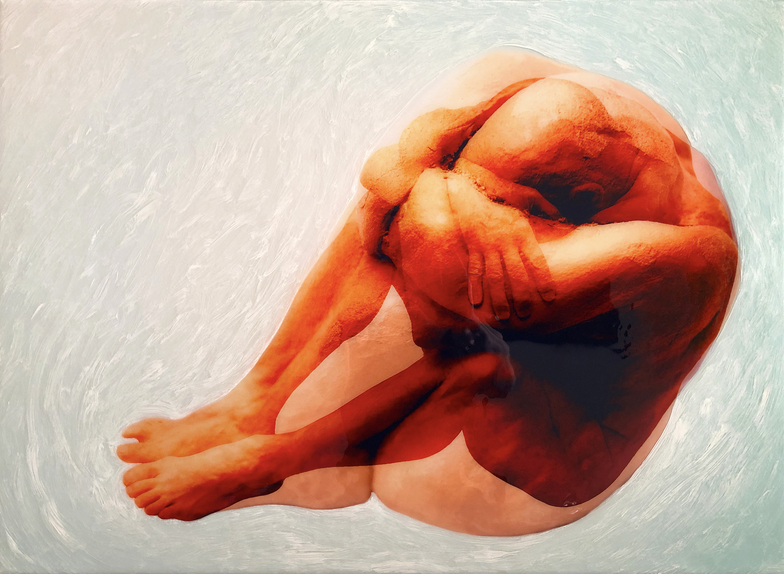 De geboetseerde mens, het verschil tussen de werkelijkheid en het beeld in ons hoofd. Fotomontage, geprint op canvas, nabewerkt met epoxy en olieverf. Bekijk de hele serie op vlvi.nl