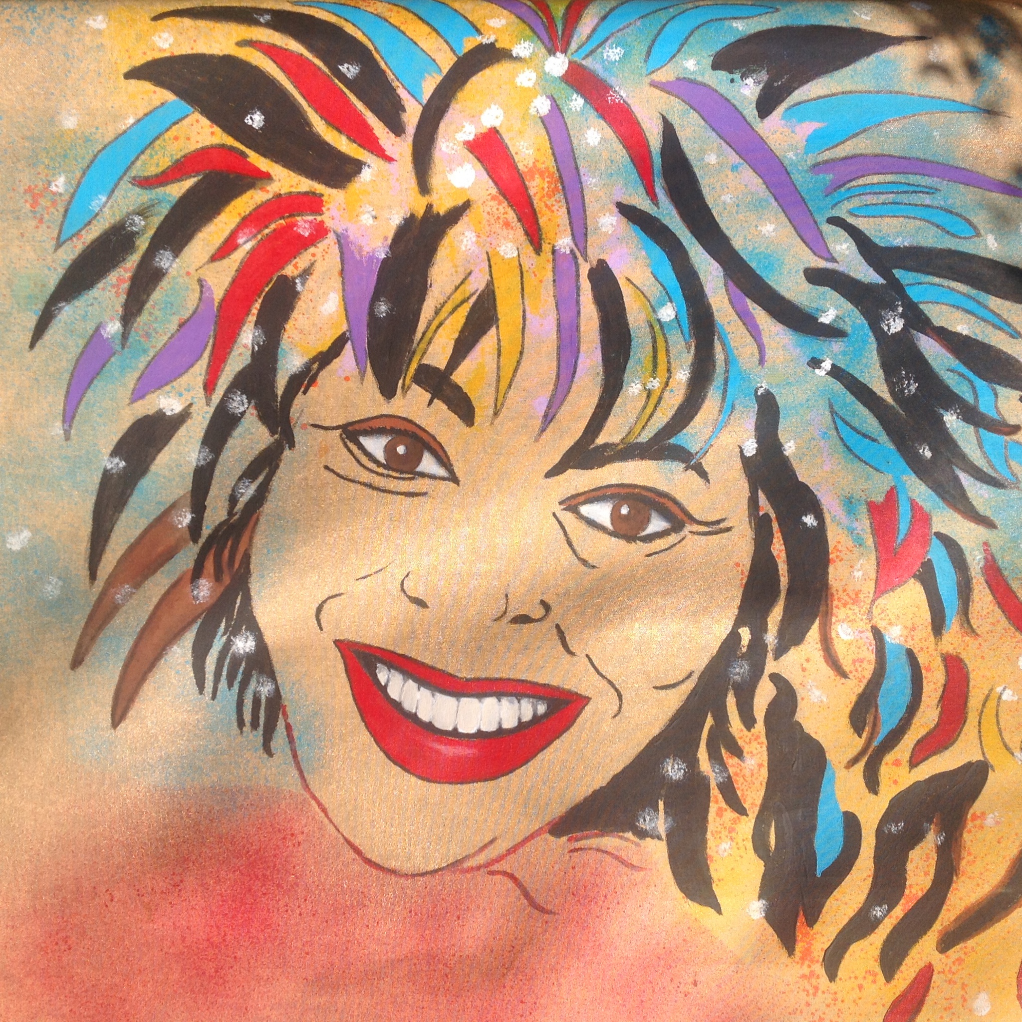 Tina Turner, duurzaam geschilderd op hergebruikt materiaal. Wie kent haar niet, de beroemde Amerikaanse zangeres van O.a. River deep Mountain high en Rolling on the river? Een fantastische popster met een mooie uitstraling die ik hier geprobeerd heb vast te leggen.