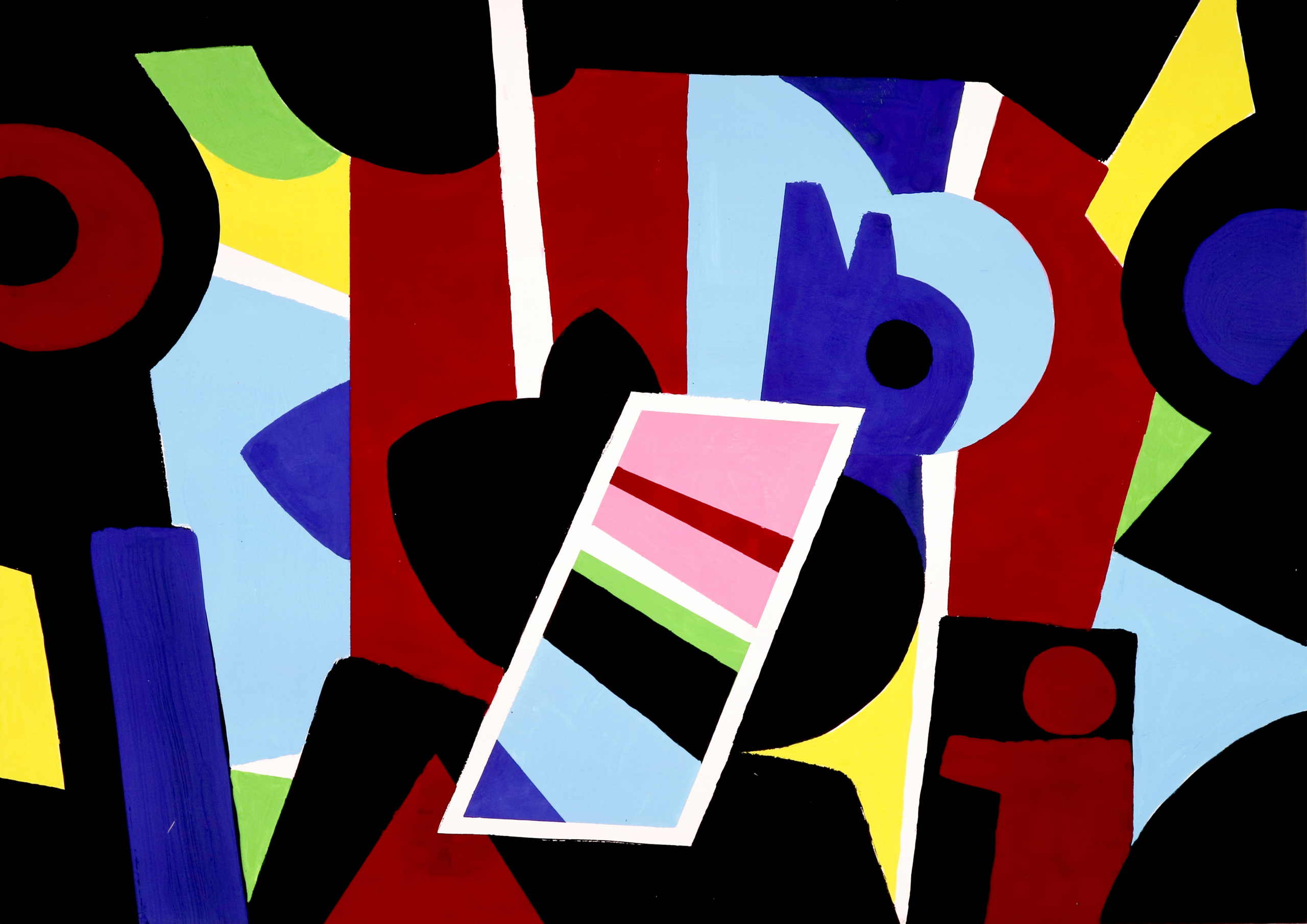 Tekeningen en schilderijen met het materiaal dat voorhanden is.