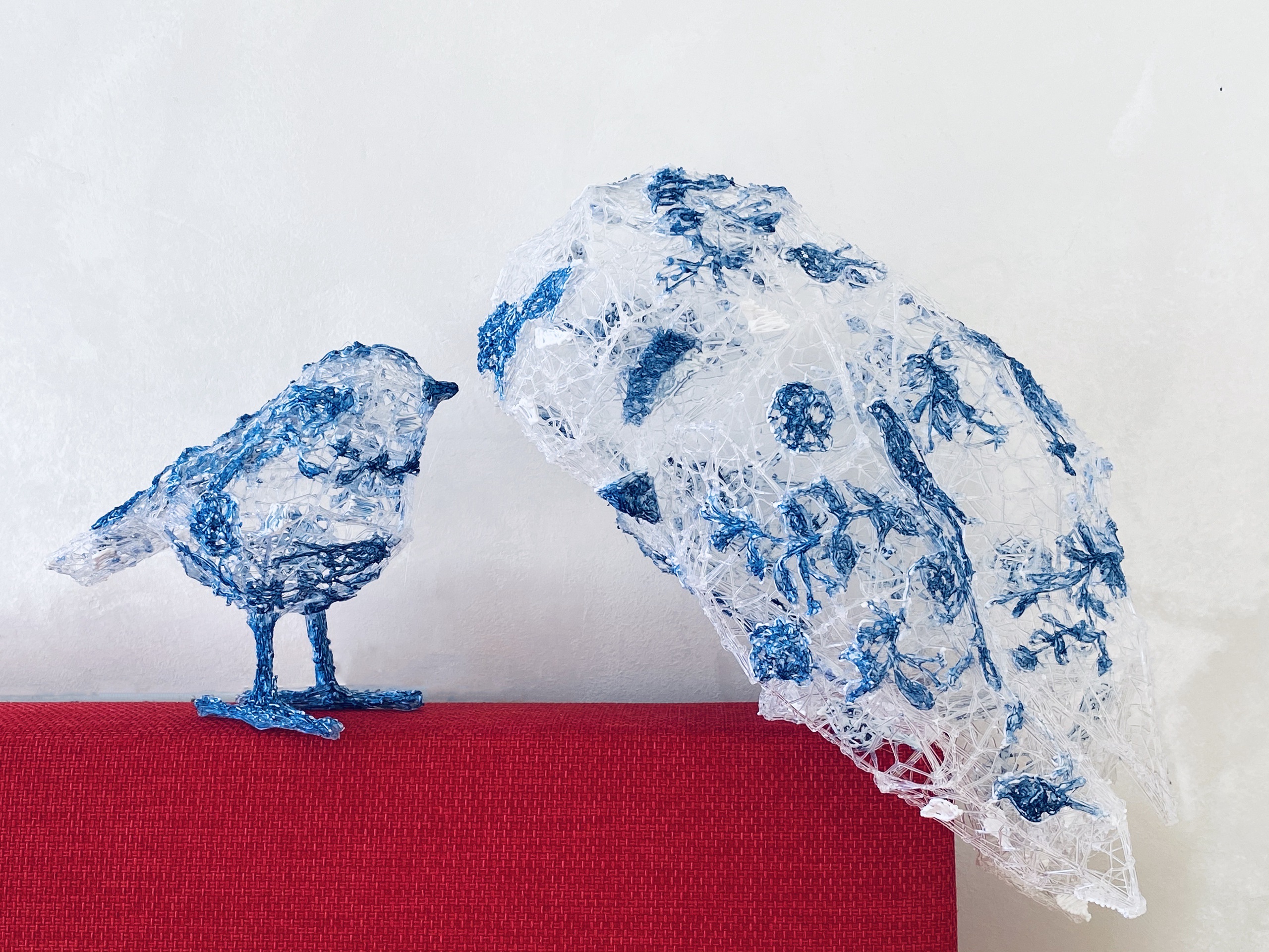Het uiltje en/of het vogeltje kunnen in ieder bijna iedere gewenste kleur geleverd worden. Bij dit stel is er een Delfts blauw element aan toegevoegd.