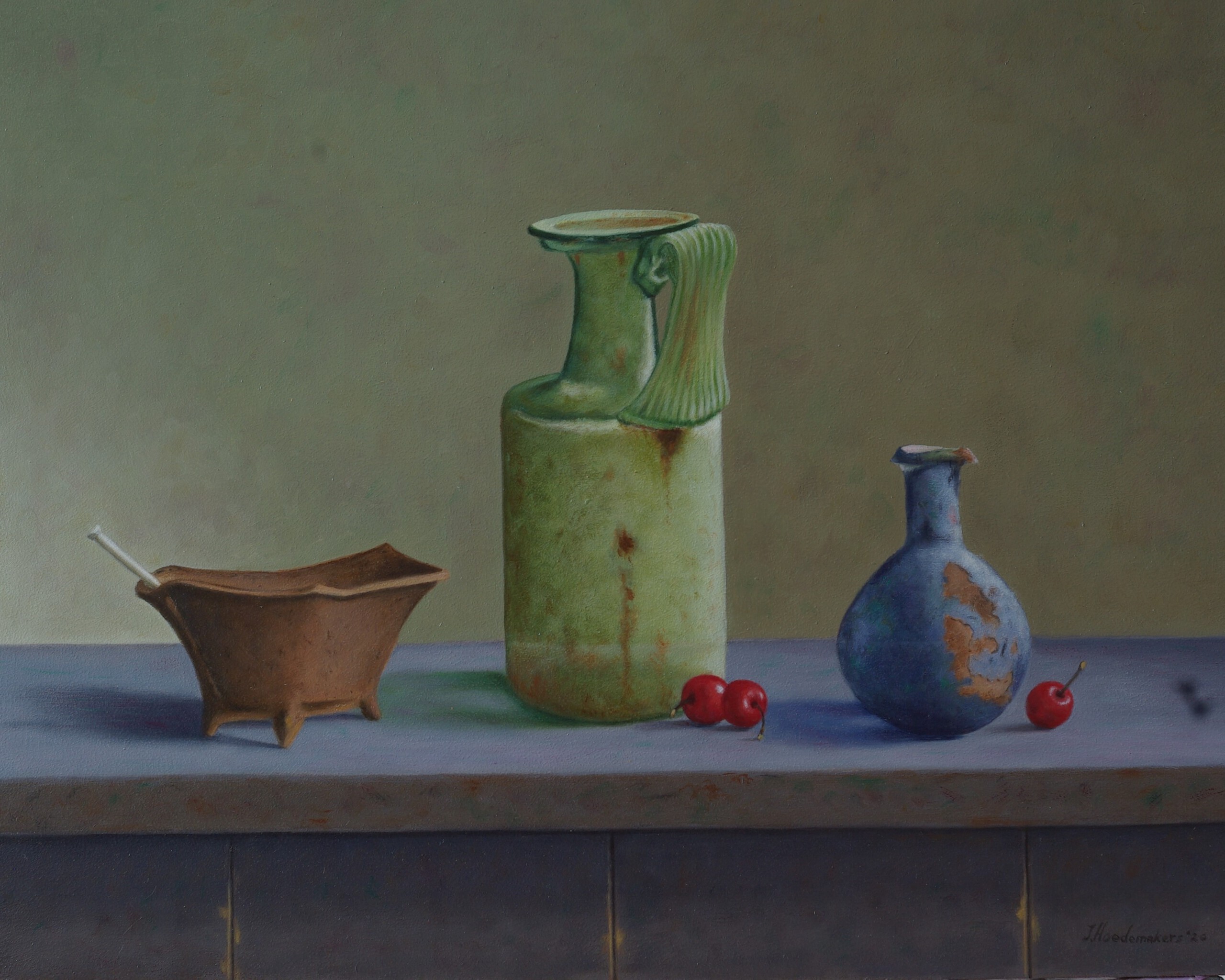 Jan Hoedemakers (1949) houdt zich sinds 1969 bezig met stillevens, interieurs, landschappen en portretten in olieverf. Zijn voorkeur gaat uit naar het realistisch weergeven van oude voorwerpen, die 'getekend' zijn door het dagelijks gebruik.