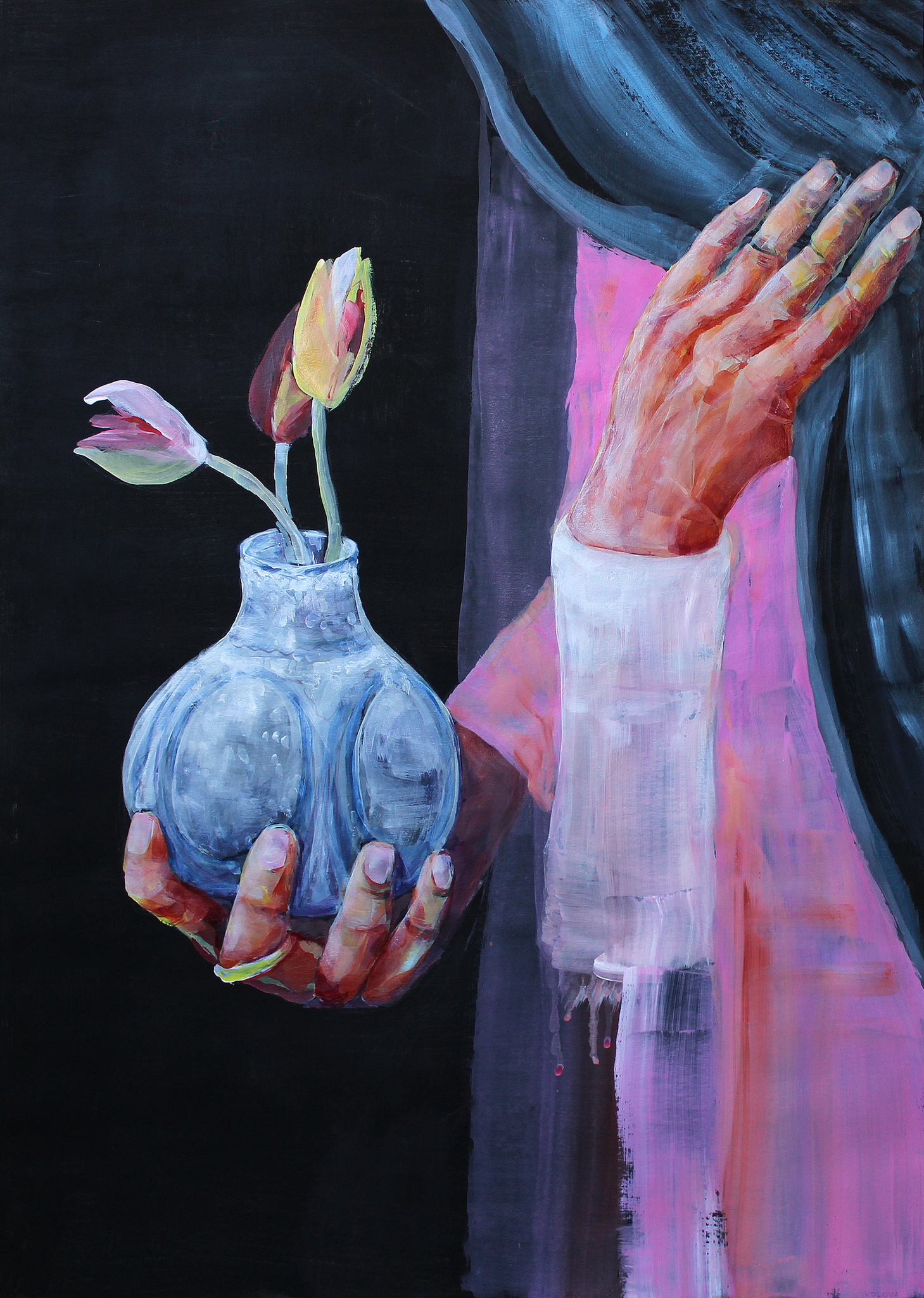 Een tuin van kleur, een blik vol verbeelding. Haar werk ademt een poetische zachtheid, maar ook lef: ze experimenteert graag met bladgoud, olieverf en gemengde technieken.