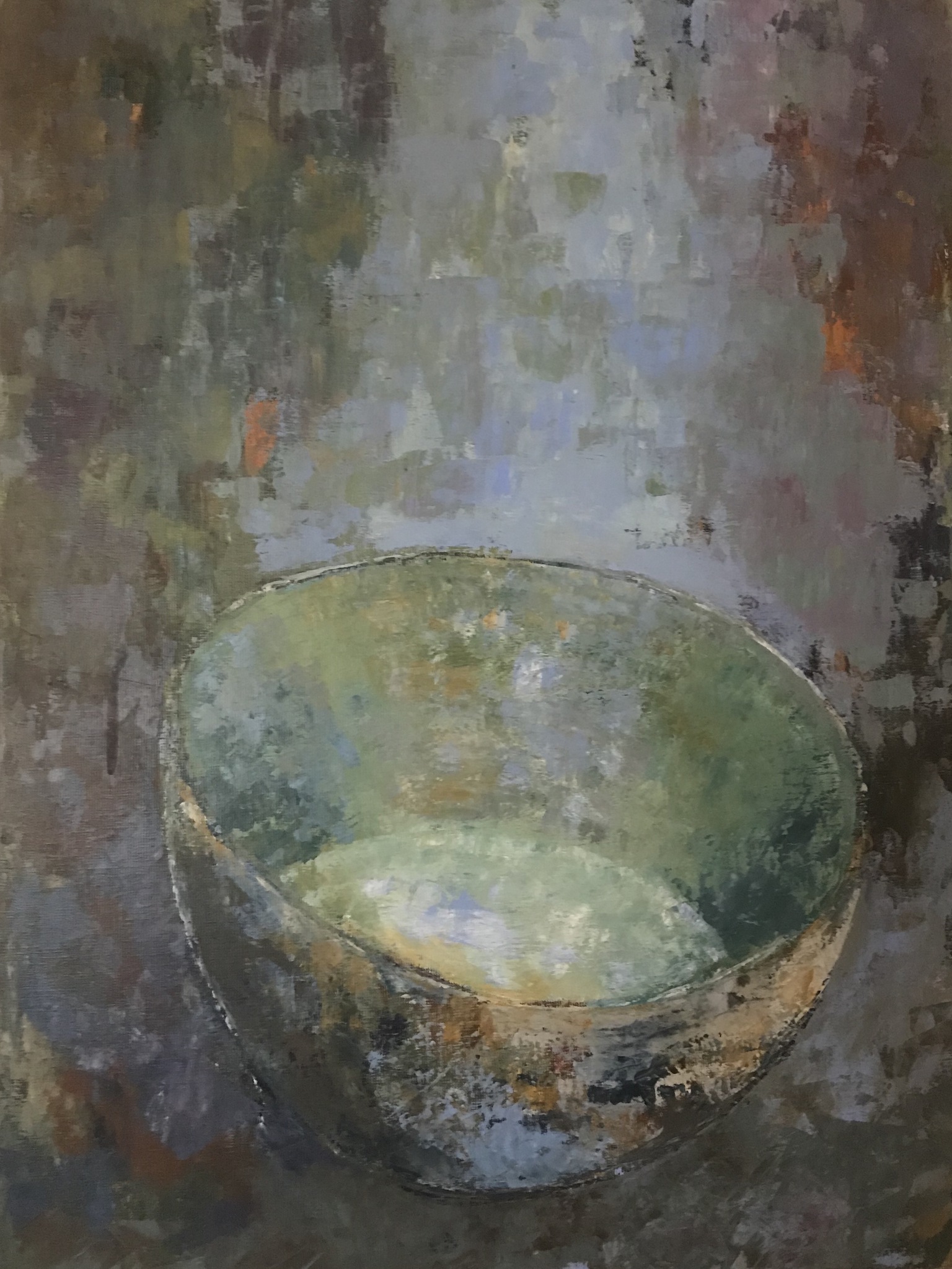 Wat betekent schilderen voor mij. Het is een uitdaging om het witte doek te temmen . Het met kleur bespelen , gebruikmakend van andere materialen zoals verband , krantenpapier , zand en druksels. Het begint met kleurlagen over elkaar , zodat de onderste lagen terug te vinden zijn in het uiteindelijke werk. Al doende ontwikkeld zich iets , het vormt zich , een beeld of gedachte wordt zichtbaar .