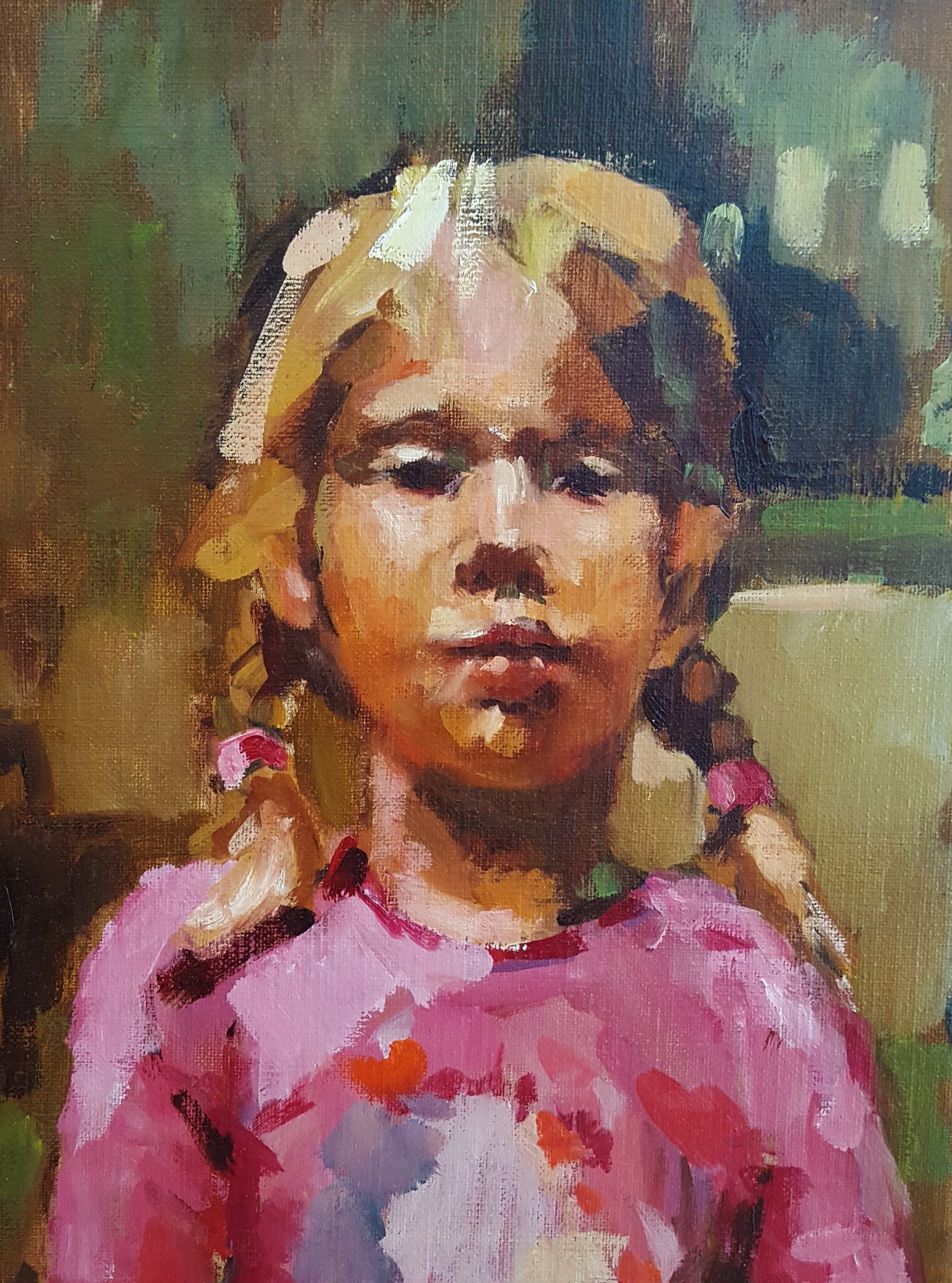 Meisje Kind Portret Olieverf Roze Jong