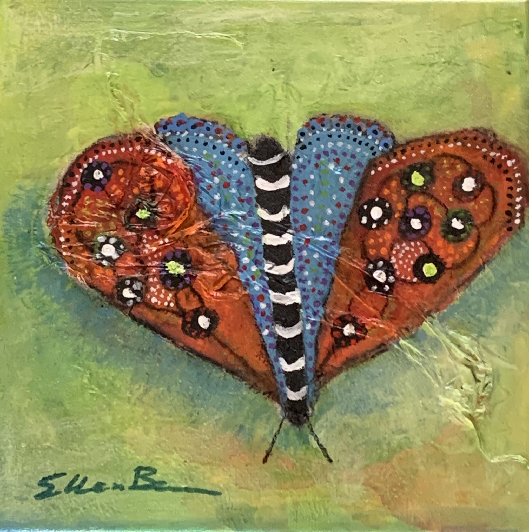 Ellen Berens (1960). Haar sterfelijkheid is wat haar bezighoudt in het leven, het gaat over vooruitgang door loslaten en anders denken en het erkennen van verliezen. Zij is een echte expressionist en staat voor het 'uitdrukken' van gevoelens. Ellen maakt met haar hoofd en handen wat er speelt in haar hart, na de diagnose ongeneeslijk kanker, dit is terug te zien in de schilderijen die ze maakt. Haar schilderijen hebben altijd meerdere lagen, zoals ook haar leven. Haar veelzijdigheid levert verrassende resultaten op. De combinatie van passie, articiteit en haar visie op het leven, maakt dat haar schilderijen symbolisch zijn met sprekende kleuren in harmonie met het onderwerp. Naast ervaringsdeskundige rond kanker is Ellen gediplomeerd in Creatieve therapie en Verlieskunde.