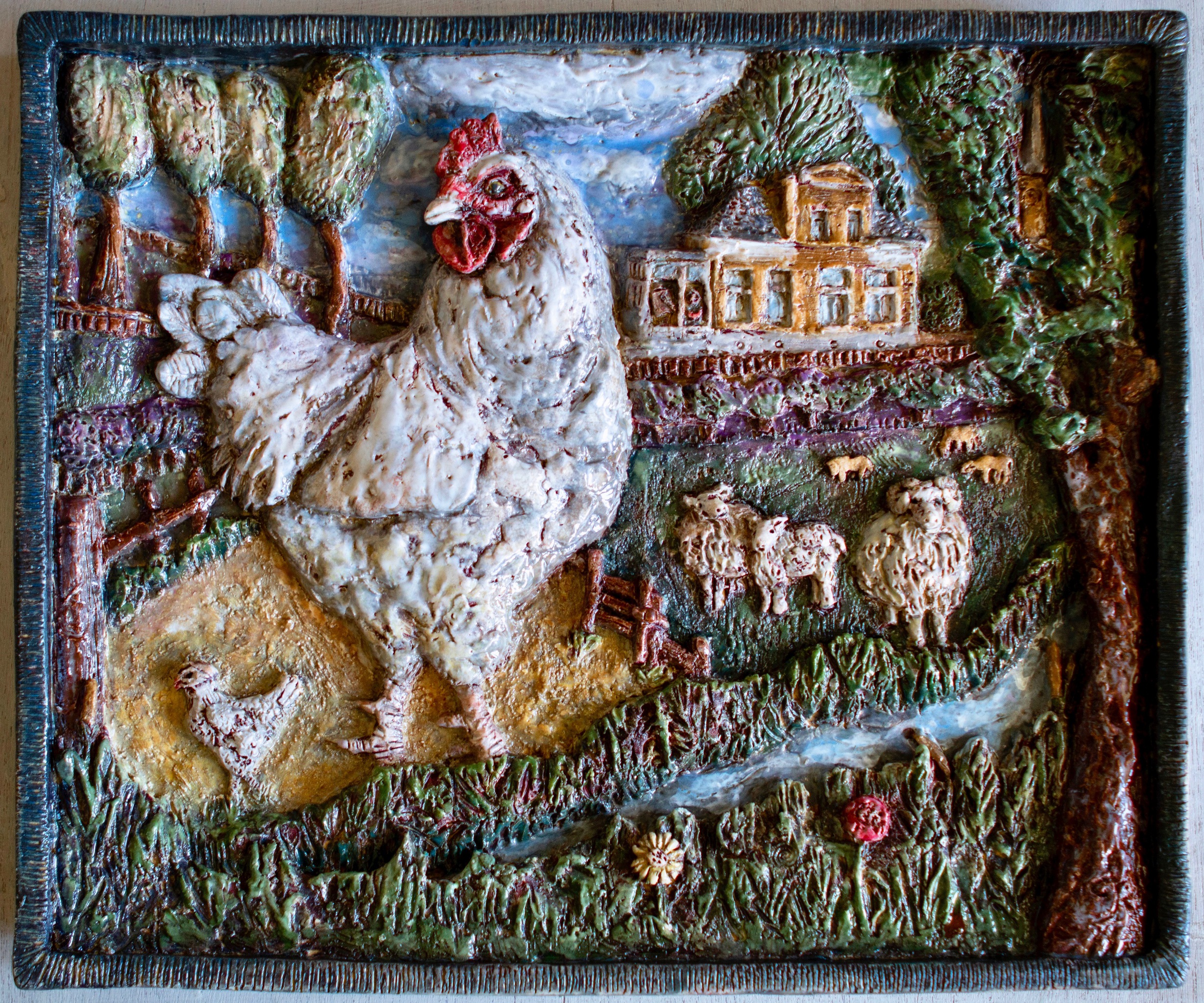 Mijn gevelsteen laat de wereld zien zoals Jan Mankes het 100 jaar geleden schilderde. Hij schilderde wat dicht om hem heen was in het plaatsje Eerbeek waar hij de laatste jaren van zijn leven woonde. De stromende beek, de weilanden, de paarden en de schapen, de bomen en de kerk, waar zijn vrouw als dominee werkzaam was. In mijn gevelsteen heb ik gekozen voor een witte kip in de hoofdrol als verwijzing naar Jan Mankes' beroemde schilderij de Witte Haan. Vanaf de beek zie je zijn woonhuis, dat nog steeds in Eerbeek staat. Als je goed kijkt zie hem daar zitten, in de serre, werkend aan zijn schilderij. Met mijn gevelsteen "de wereld van Jan Mankes" doe ik mee aan de wedstrijd '100 jaar Jan Mankes'. Via de link kun je op mijn werk een stem uitbrengen: https://lnkd.in/d5HUbXS