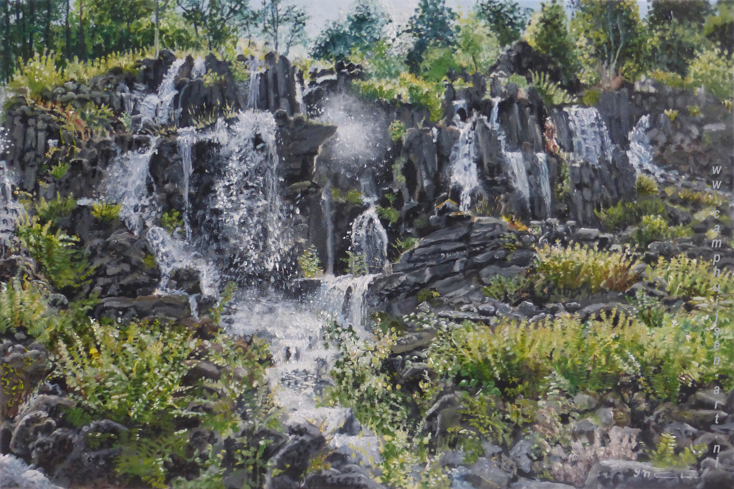 Zo ziet het er volgens mij uit, wanneer je overweldigd wordt door allemaal fijne emoties. Het bruist en spettert dan in je. Alle aspecten van het gevoel lichten op en verrassen en laten alles aan je glimmen. Geïnspireerd door de Steinhöfer wasserfall bij Kassel in Duitsland