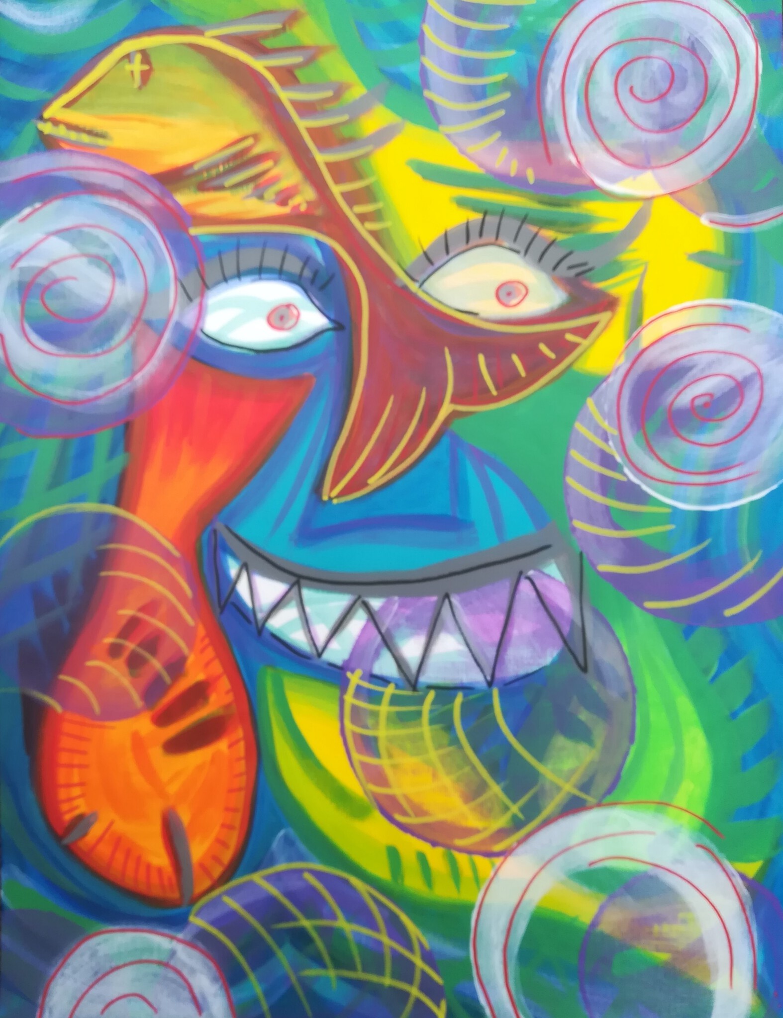 Vissen Felle kleuren. Acrylverf op papier.