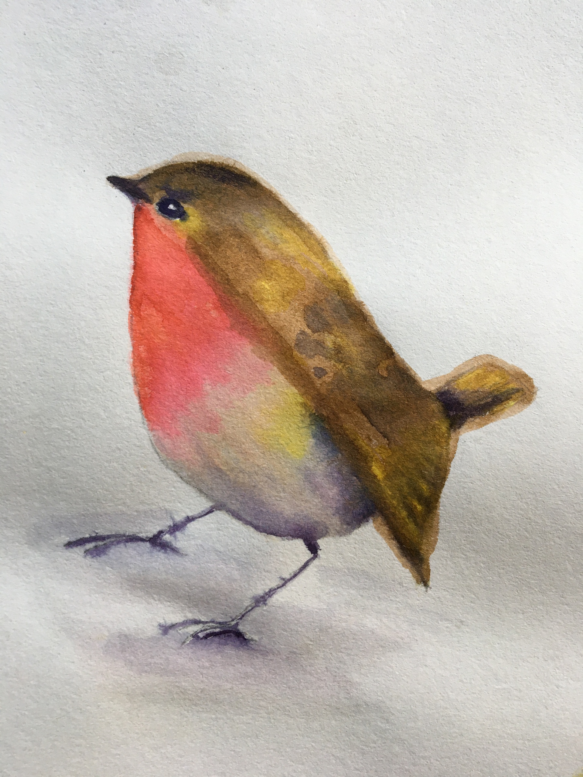 Roodborstje * matrialen; aquarelverf van het merk Van Gogh en aquarel papier van goede kwaliteit.