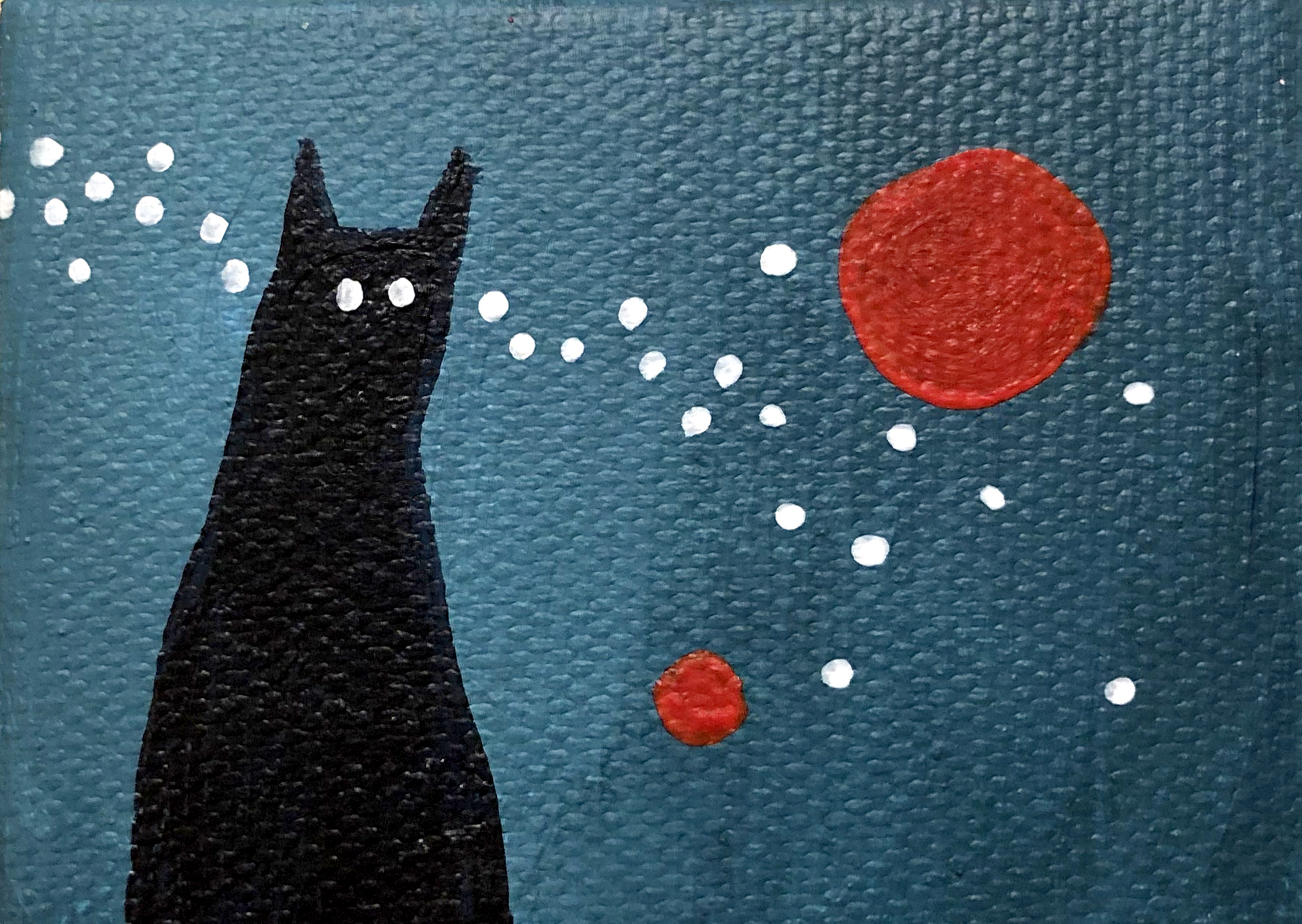 Minischilderijtje (5x7 cm) van een zwarte kat