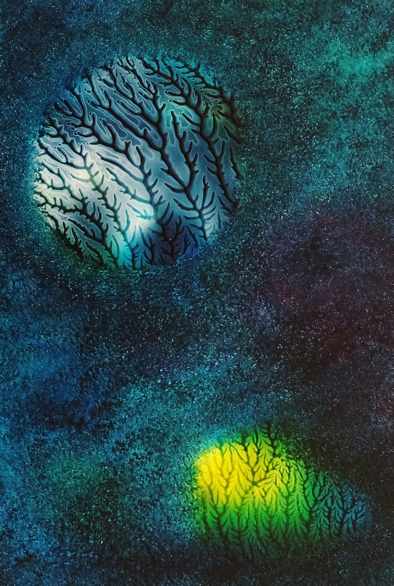 Geel Blauw Spiritueel Maan Surrealistisch Takken Sterren Kosmos Kerst