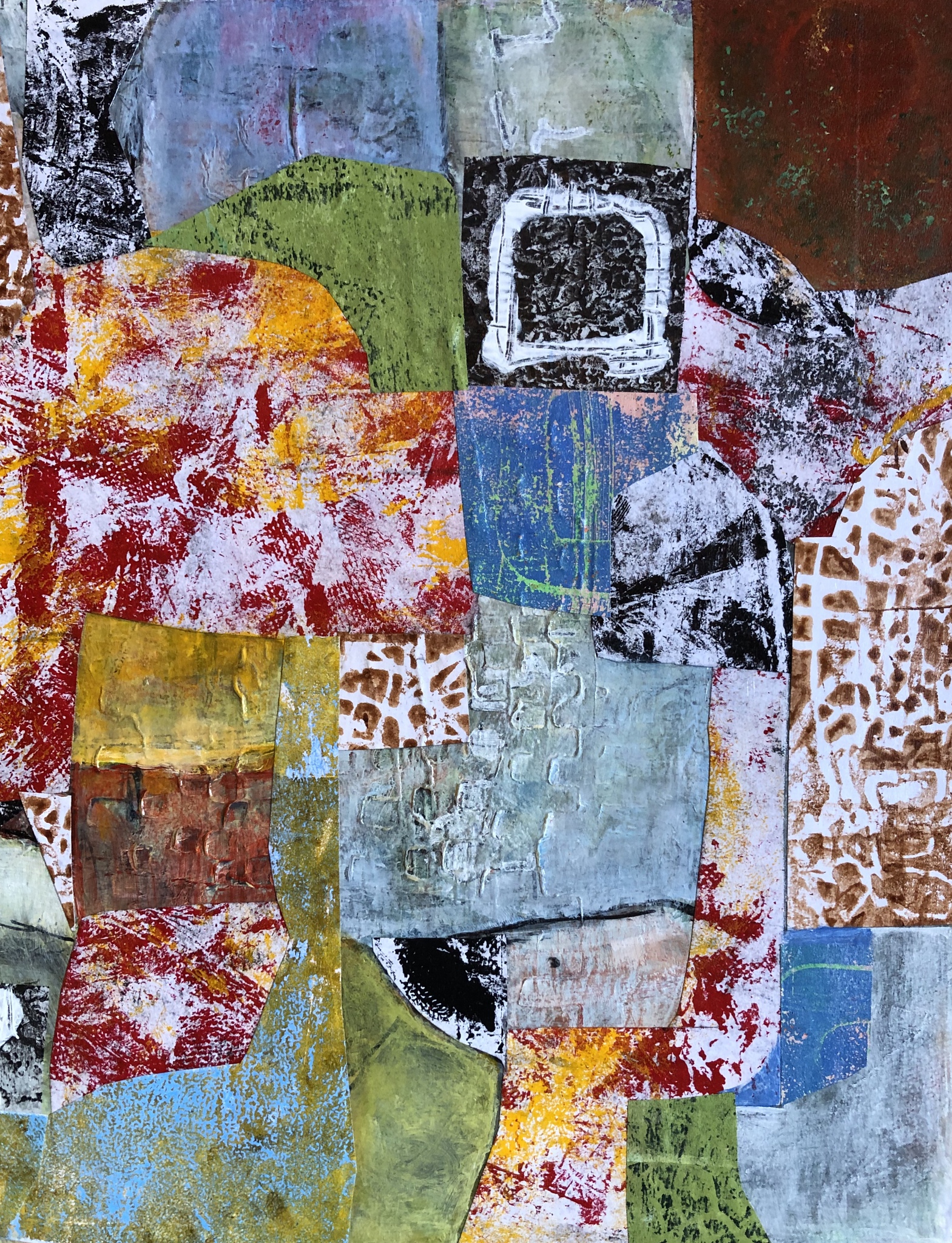 Ik maak schilderijen in gemengde techniek die met een zorgvuldige keuze van compositie, materiaal en kleur veel ruimte laten voor verbeelding.