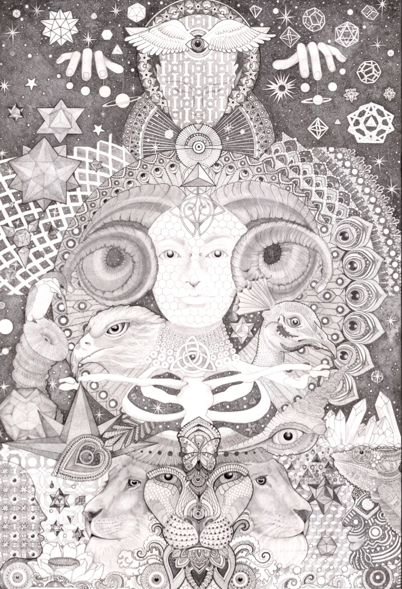 Spiritueel Art Tekening Geometrisch Pointilisme Sacred Tattoo Fibonacci Geometry Visionary Hallucinogeen Dotwork