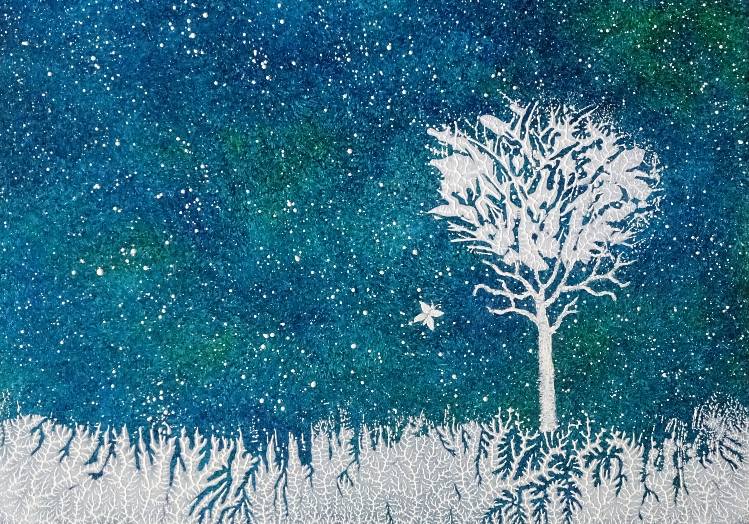 De vlinder staat symbool voor ontwaken, een nieuw leven. De boom voor (levens)kracht. A4 formaat.
