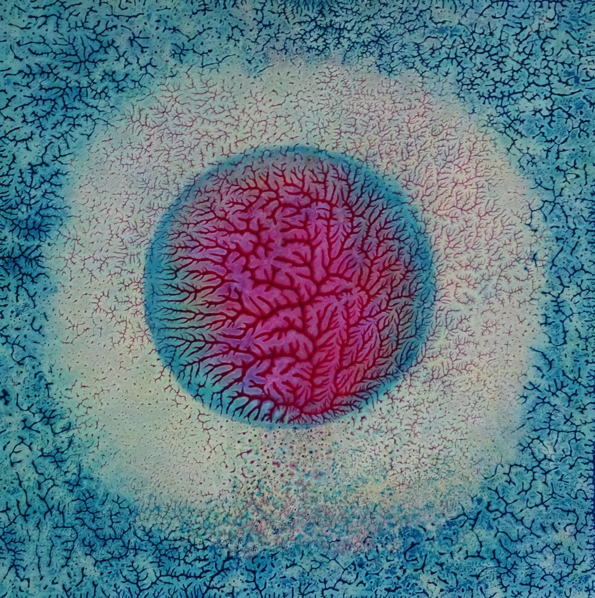 Grillige cirkel in blauw en magenta
