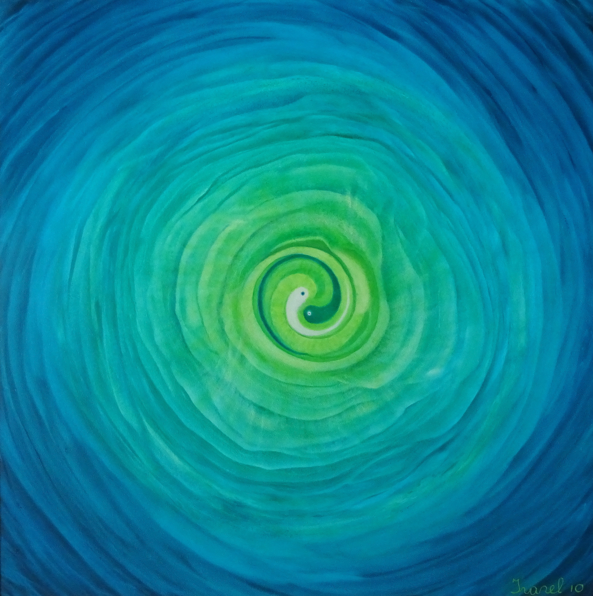 In werkelijkheid is het schilderij meer turquoise dan blauw