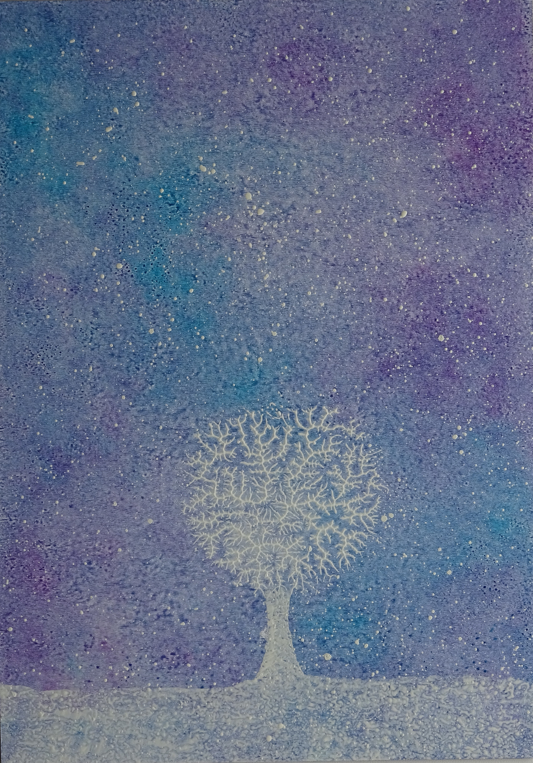 witte boom in lila universum
