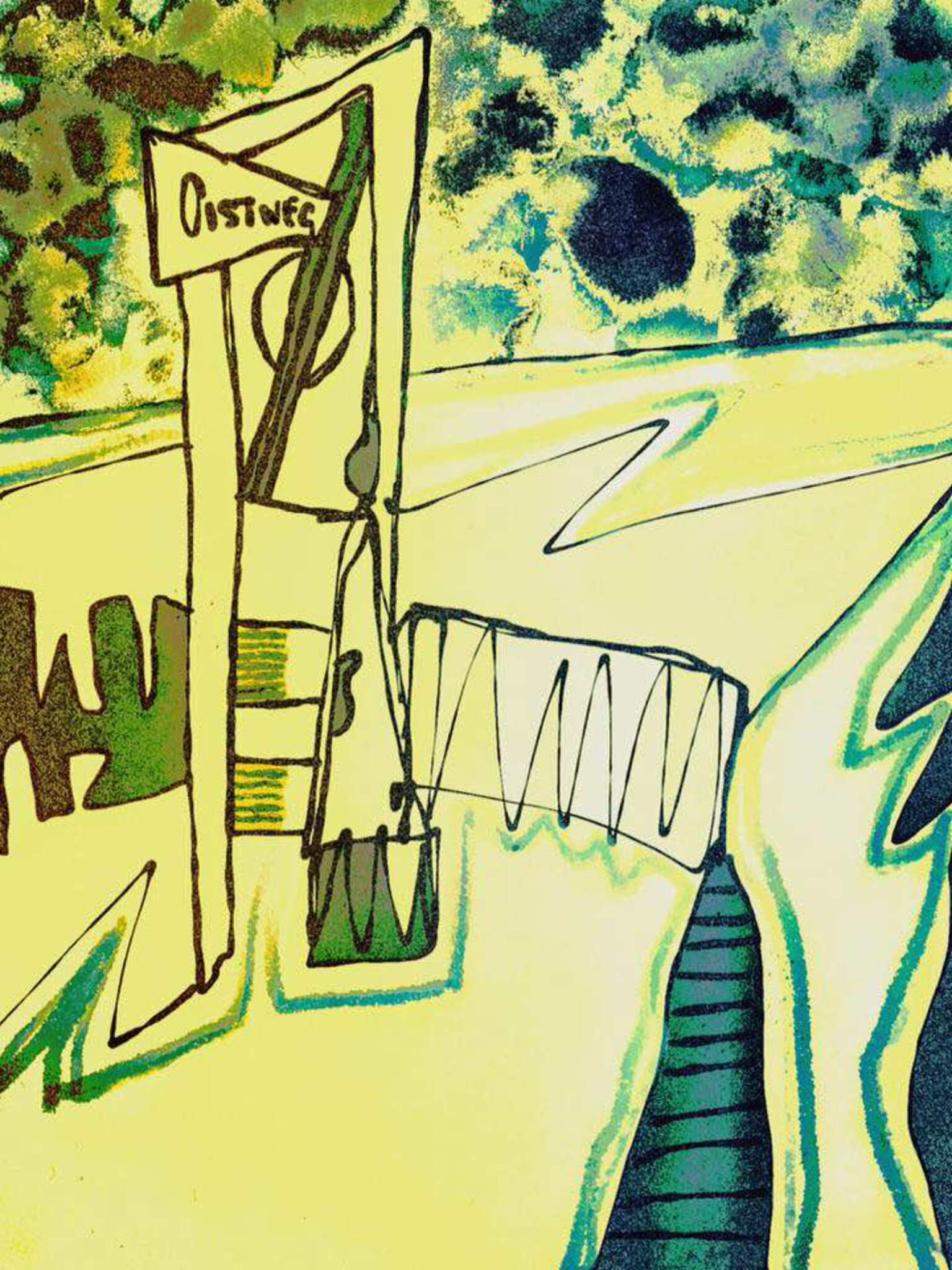 Digital tekening van de de grensovergang aan de Oostweg tijdens de lockdown van de COVID19 pandemie.